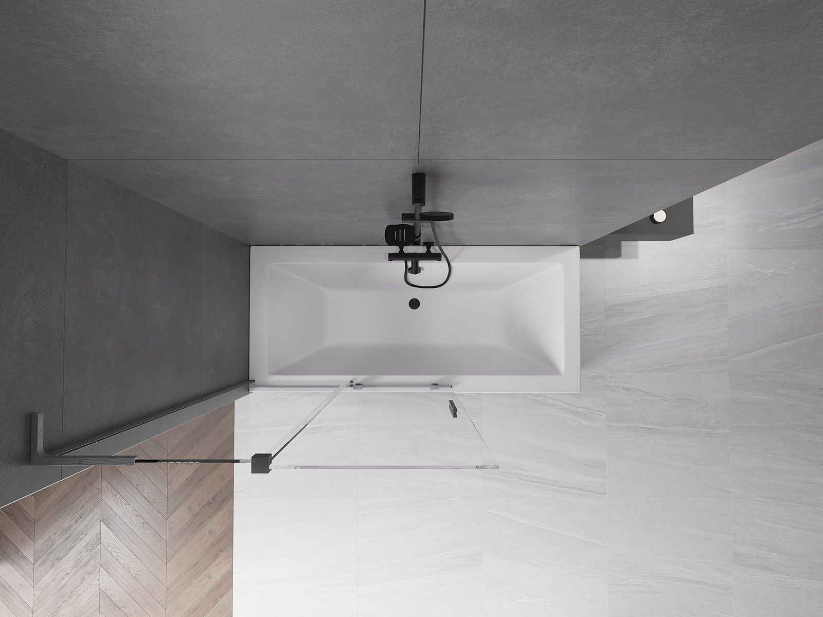 Effective protection against water spilling during bathing. The screen has seals that perfectly fit the glass surface and the edge of the bathtub. A functional solution ensuring safety and easy maintenance of cleanliness.