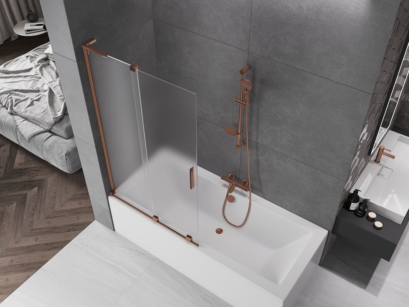 Mexen Velar L bi-fold shower screen 2-panel sliding 110 x 150 cm, frost, rose gold - 896-110-003-31-60