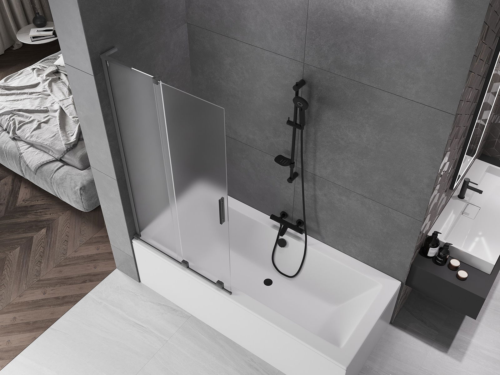 Mexen Velar L 2-wing sliding bath screen 90 x 150 cm, frost, gun metal - 896-090-003-31-95