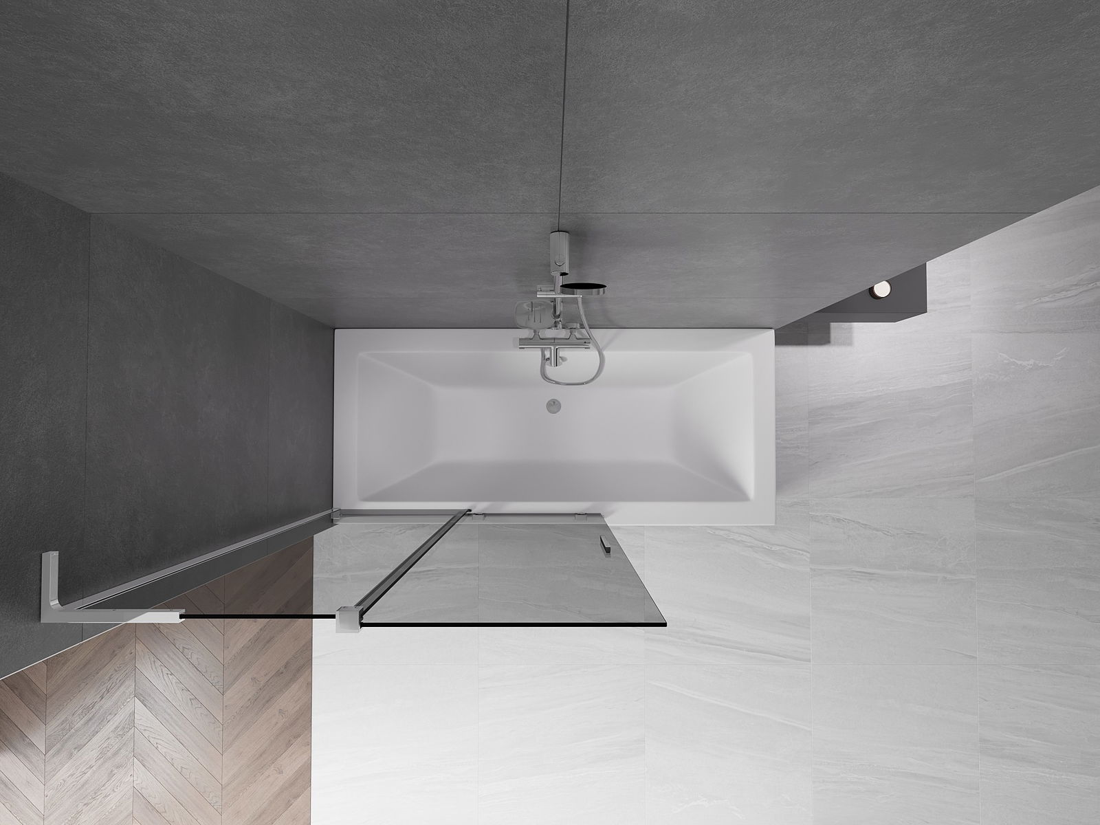 Effective protection against water spilling during bathing. The screen has seals that perfectly fit the glass surface and the edge of the bathtub. A functional solution ensuring safety and easy maintenance of cleanliness.