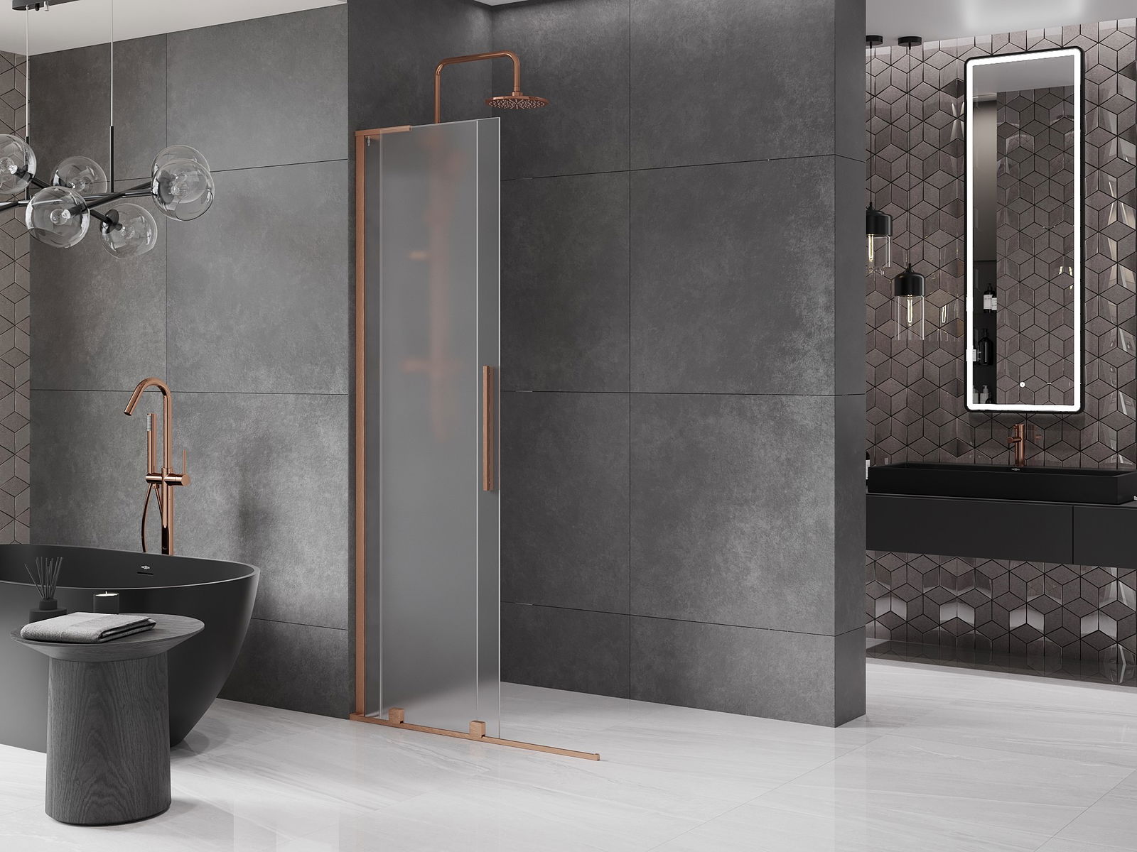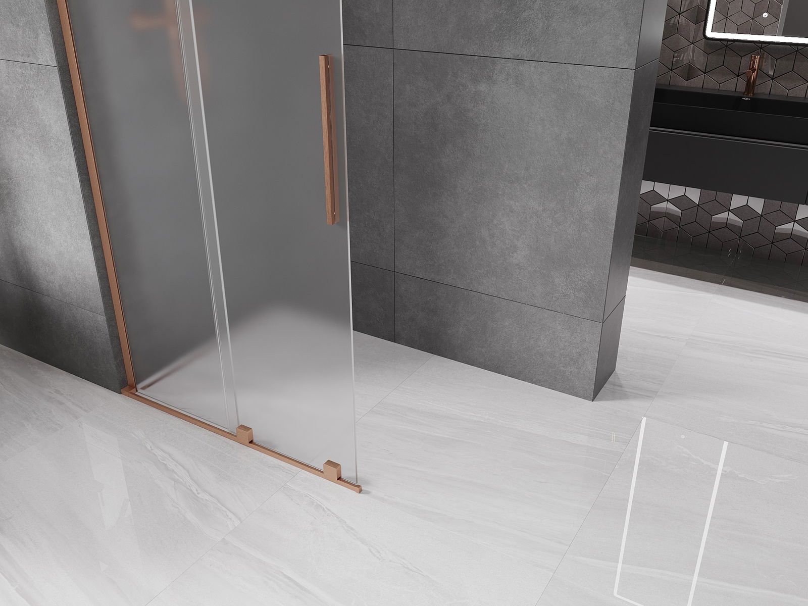Mexen Velar L Sliding Shower Panel Walk-in 90 x 200 cm, Frosted 8 mm, Brushed Copper - 871-090-003-33-65