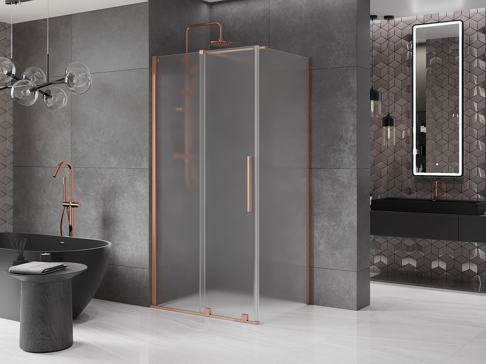 Mexen Velar sliding shower cabin 130 x 100 cm, frost, brushed copper - 871-130-100-31-65