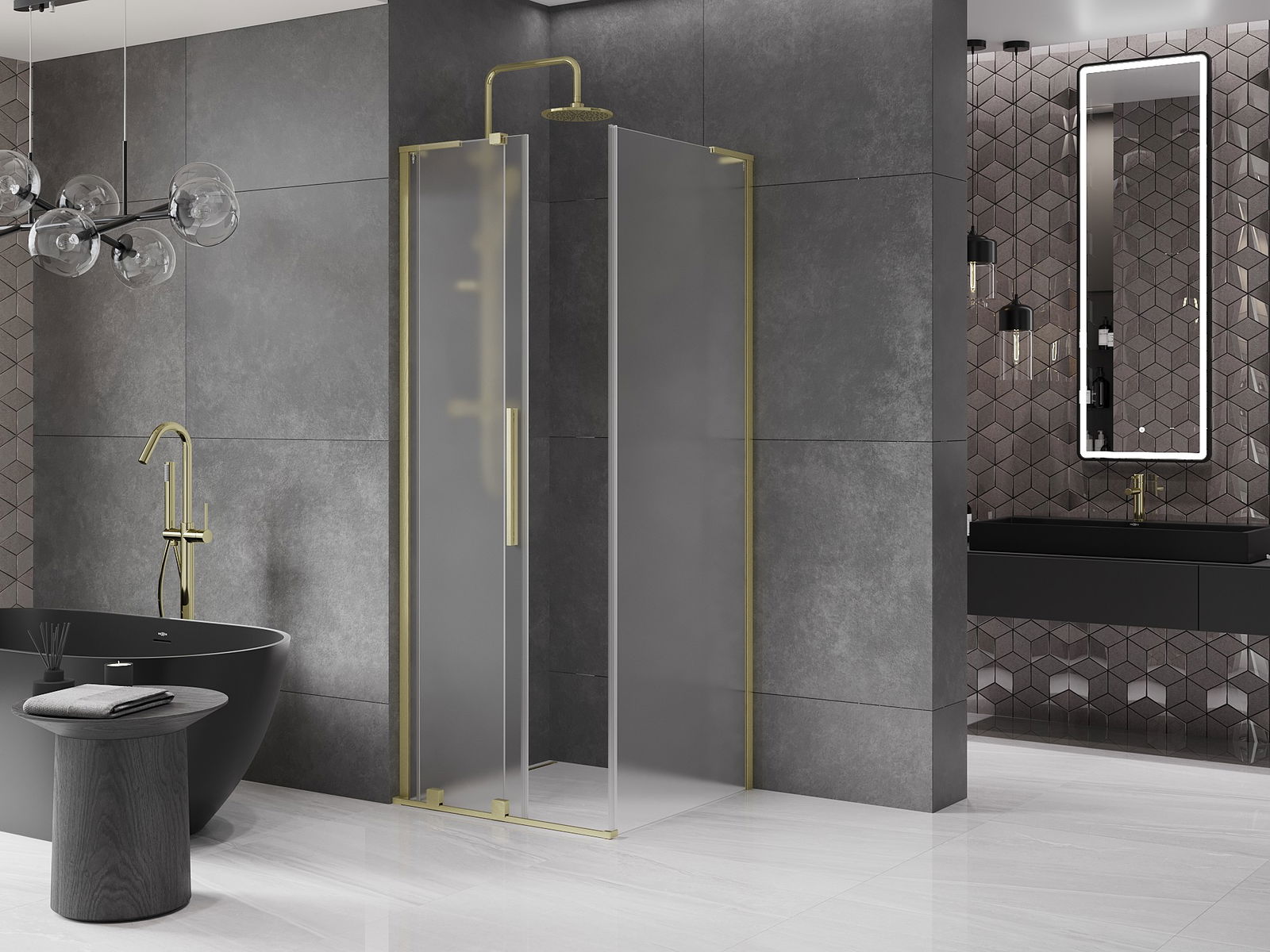Mexen Velar L sliding shower enclosure 90 x 90 cm, frost, brushed gold - 871-090-090-33-55