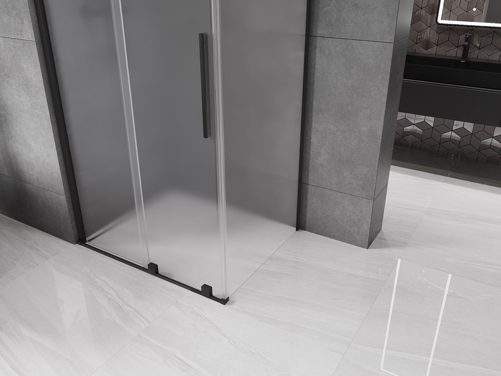 Mexen Velar sliding shower enclosure 90 x 85 cm, frost, black - 871-090-085-31-70