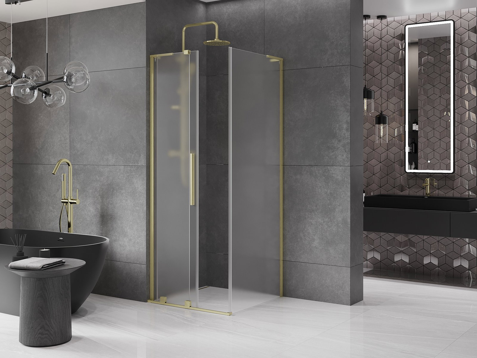 Mexen Velar L Sliding Shower Enclosure 110 x 110 cm, Frosted, Brushed Gold - 871-110-110-33-55
