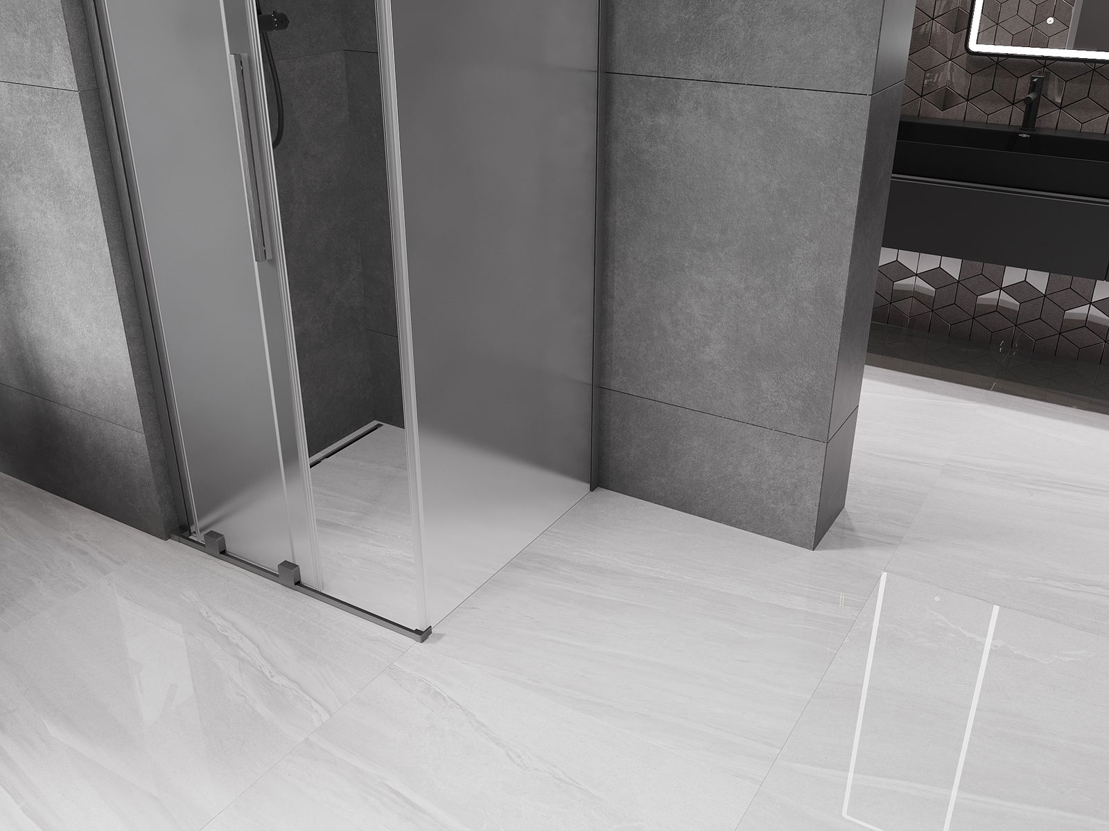 Mexen Velar L sliding shower cabin 100 x 100 cm, frost, brushed gun gray - 871-100-100-33-66