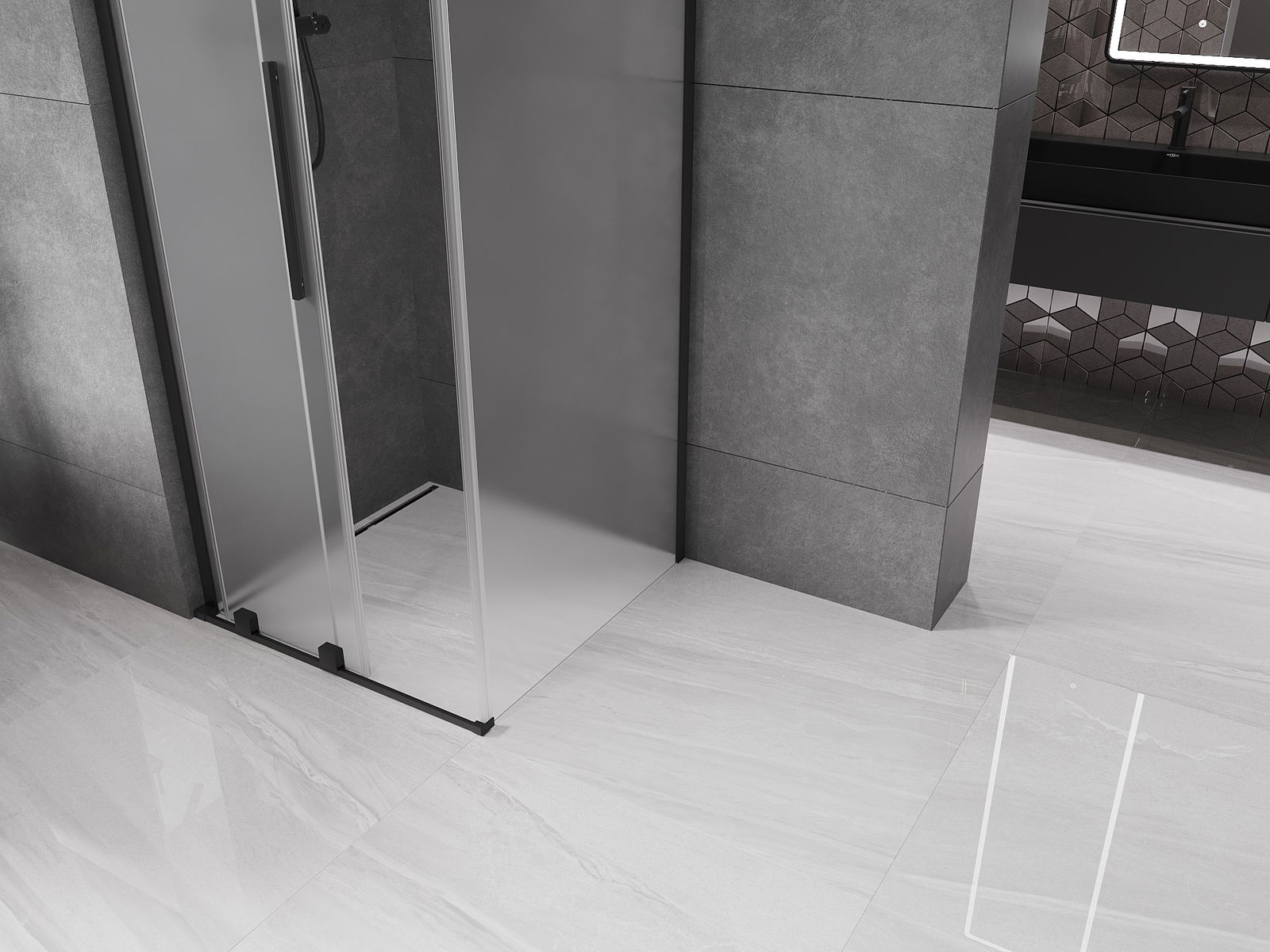 Mexen Velar L sliding shower cabin 90 x 90 cm, frosted, black - 871-090-090-33-70