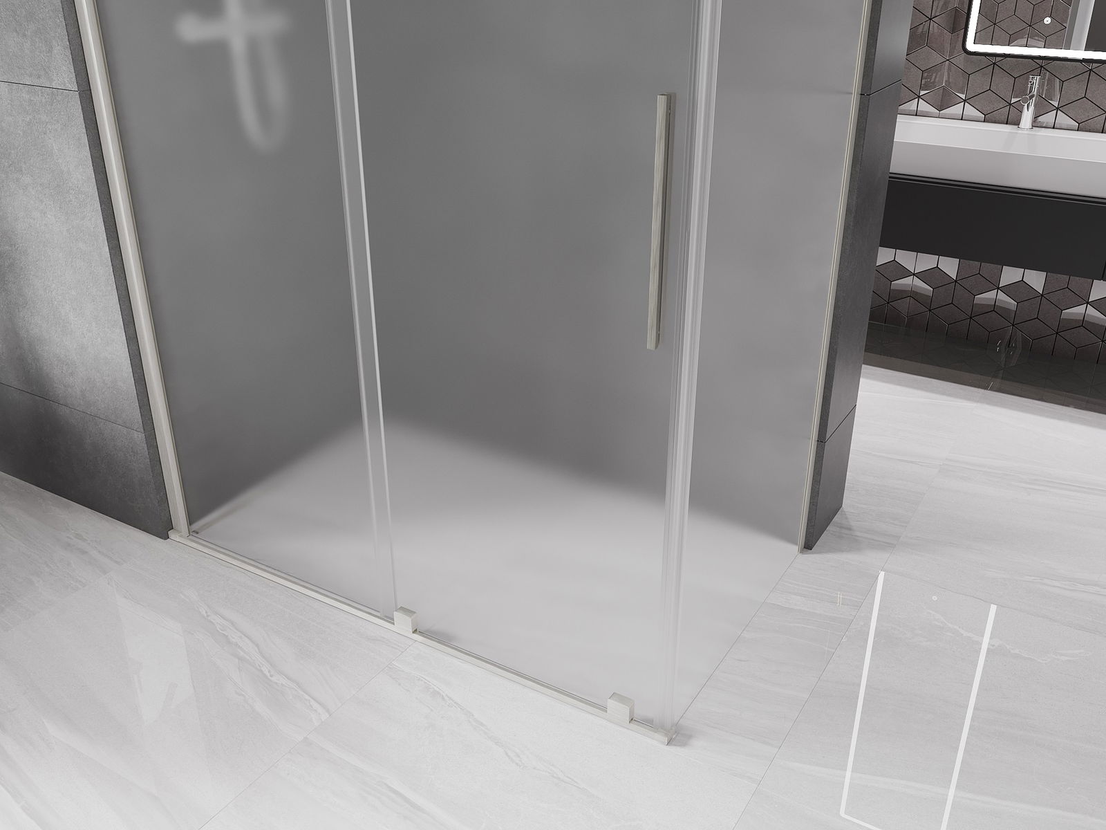 A handy and convenient handle made of stainless steel. The stylish shape combined with a finish that matches the color of the profiles gives a modern and stylish look, highlighting the aesthetics of any bathroom.