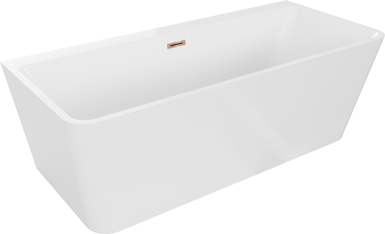 Mexen Volta freestanding wall-adjacent bath 150 x 75 cm, white, rose gold overflow - 51131507500-60