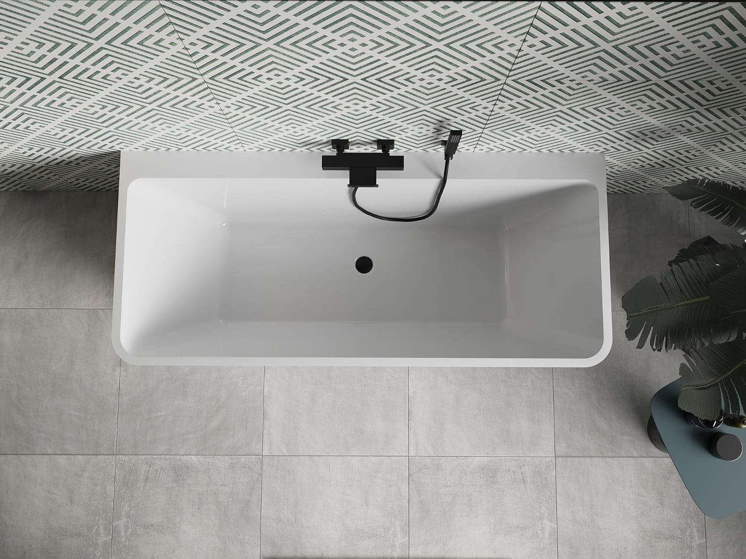Mexen Volta free-standing wall-adjacent bath 150 x 75 cm, white/black, black overflow - 51131507575-70