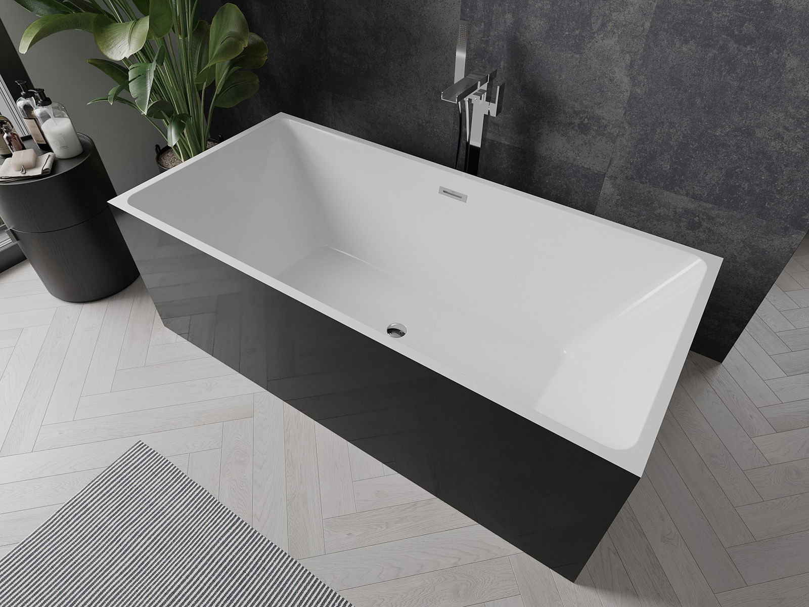 Mexen Nita freestanding bath 170 x 80 cm, white/black, chrome overflow - 52091708075-01