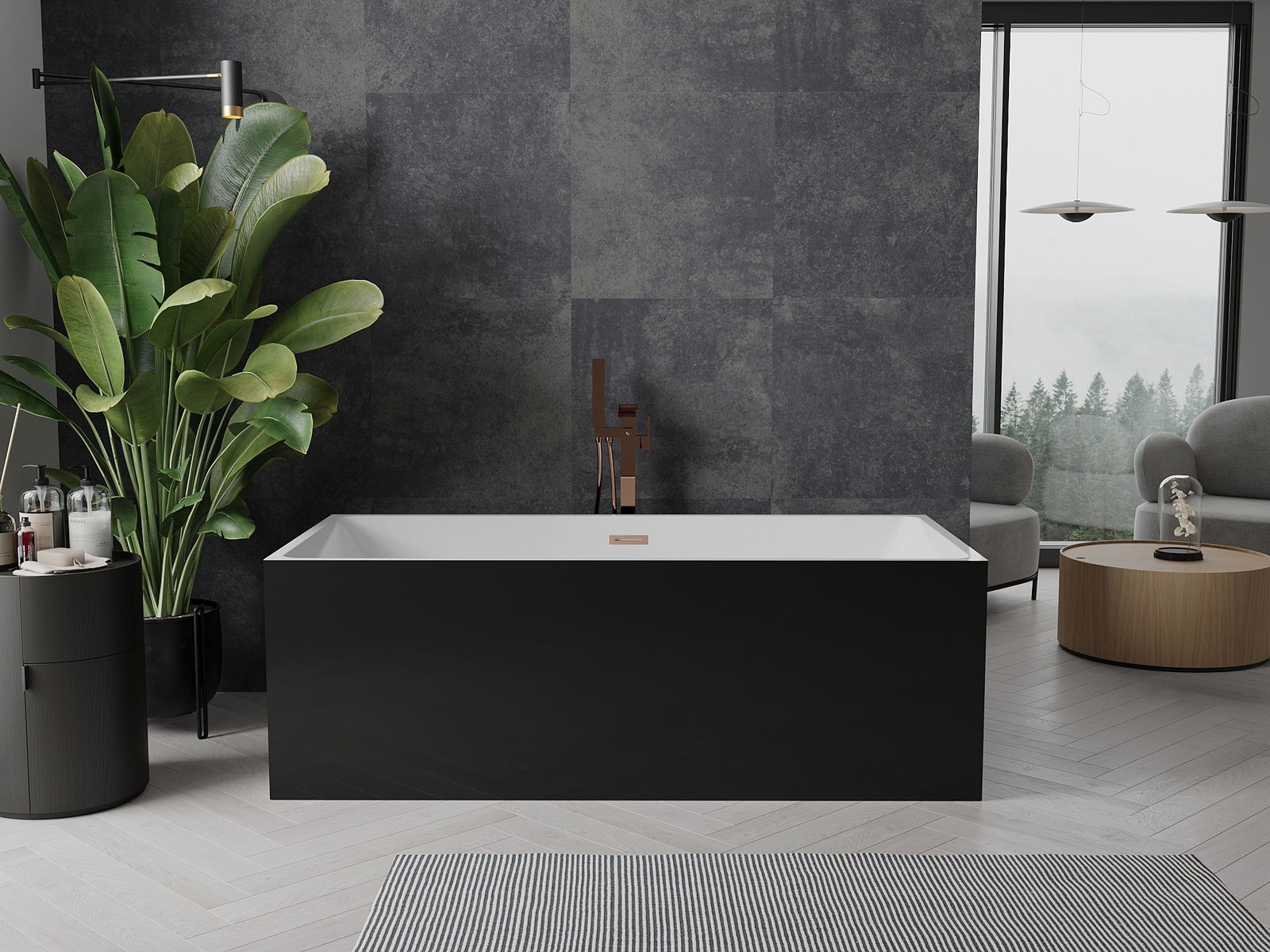 Mexen Nita freestanding bath 170 x 80 cm, white/black, brushed copper overflow - 52091708075-65