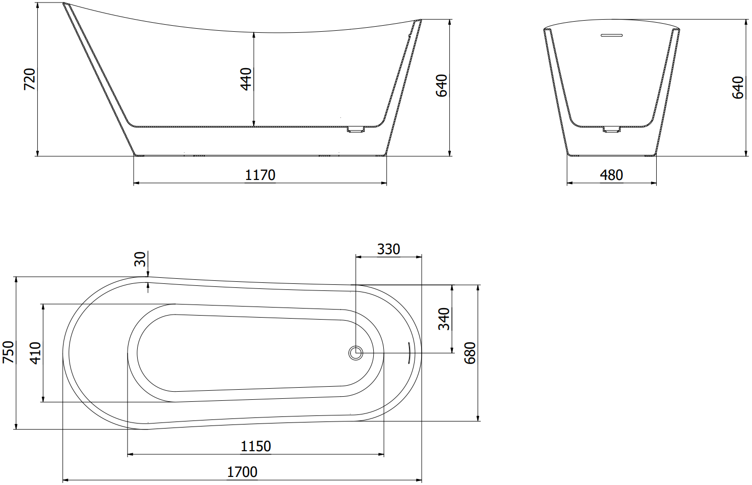 The overflow opening is referred to as the "safety opening". It allows excess water to escape, protecting the bathroom from flooding. This is a safe and practical solution that lets you enjoy a bath without worrying about the water level rising.