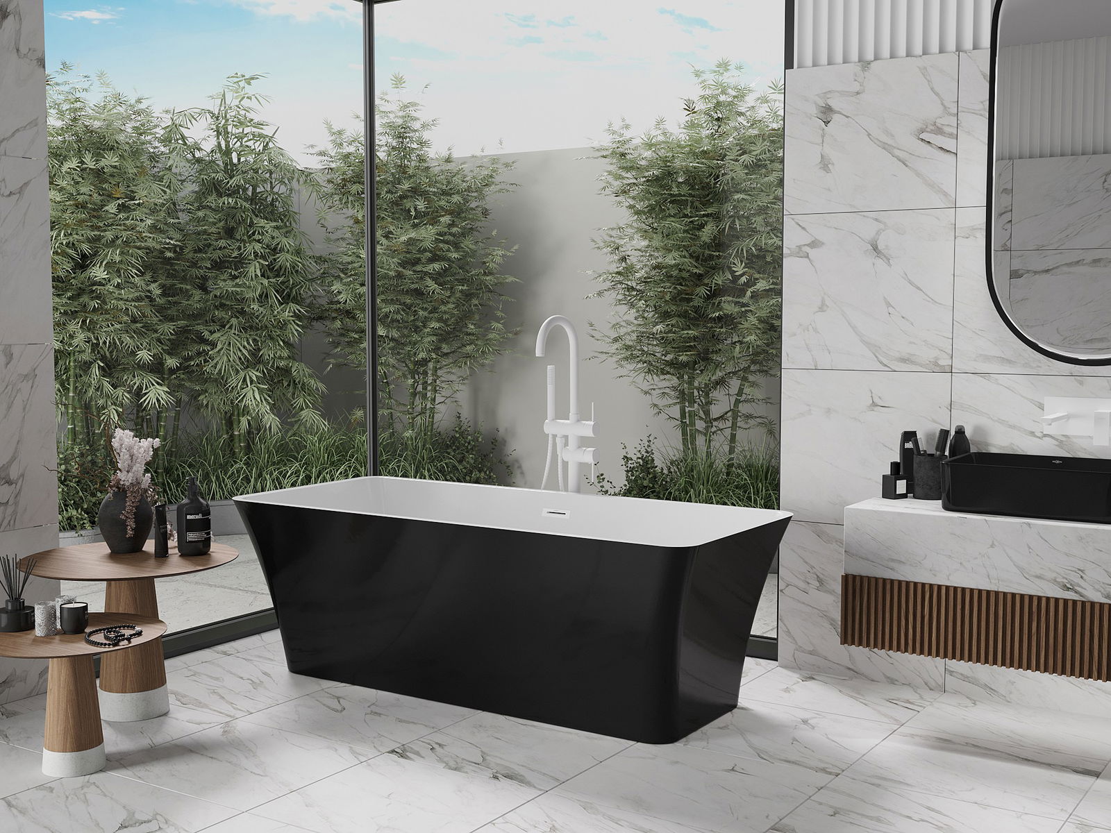Mexen Tonia freestanding bath 170 x 75 cm, white/black, white overflow - 52171707575-20