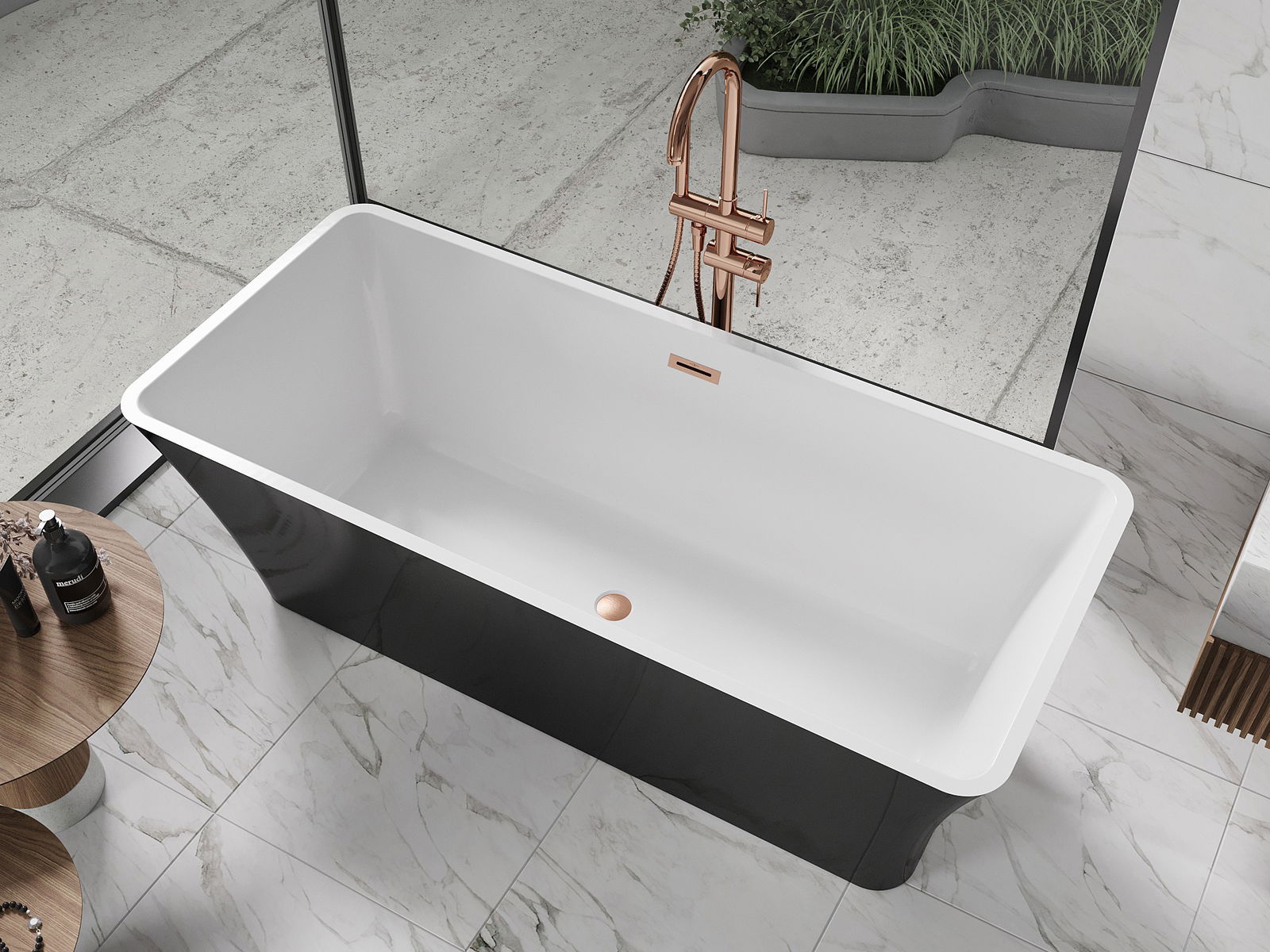 Mexen Tonia freestanding bath 170 x 75 cm, white/black, brushed copper overflow - 52171707575-65
