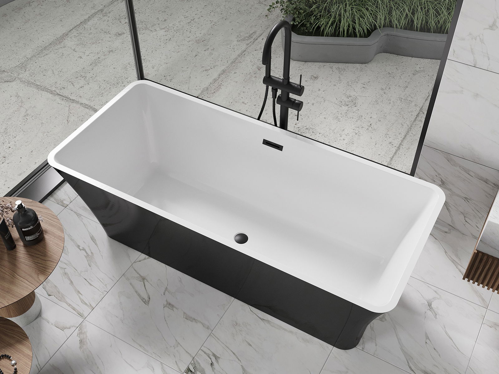 Mexen Tonia 170 x 75 cm freestanding bath, white/black, black overflow - 52171707575-70