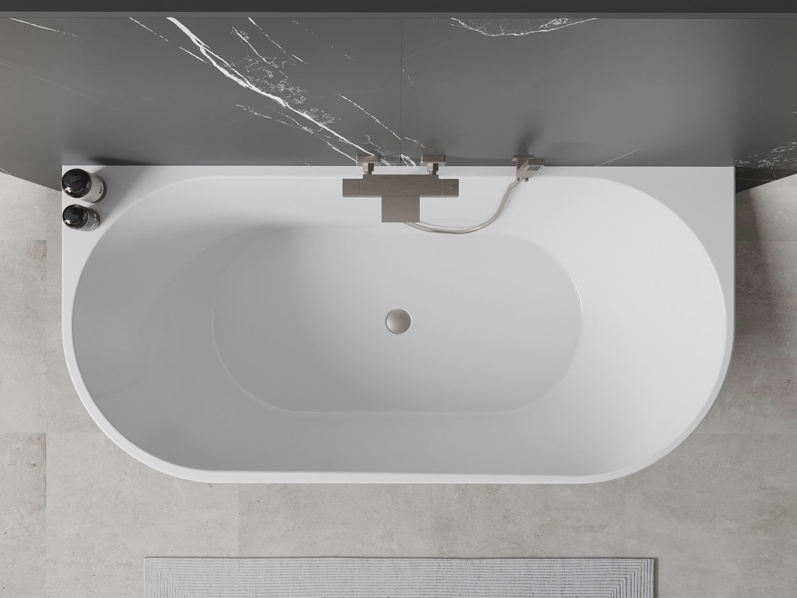 The Mexen Oval is a modern freestanding back-to-wall bathtub measuring 160 x 80 cm, combining elegance with functionality. Made from high-quality sanitary acrylic, it ensures durability and a smooth surface in white color. It offers resistance to tarnishing and UV radiation, extending its aesthetic appeal for years. The brushed nickel finish adds subtlety, and the practical overflow hole enhances user comfort. Ideal for modern bathrooms, it combines style with convenience.
