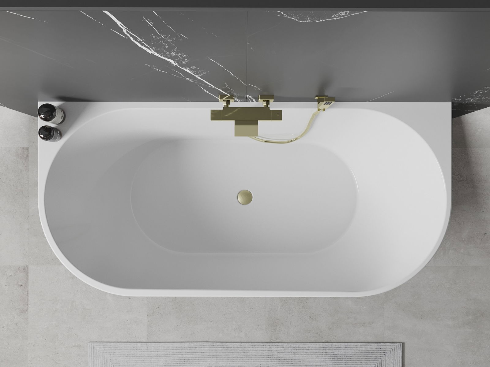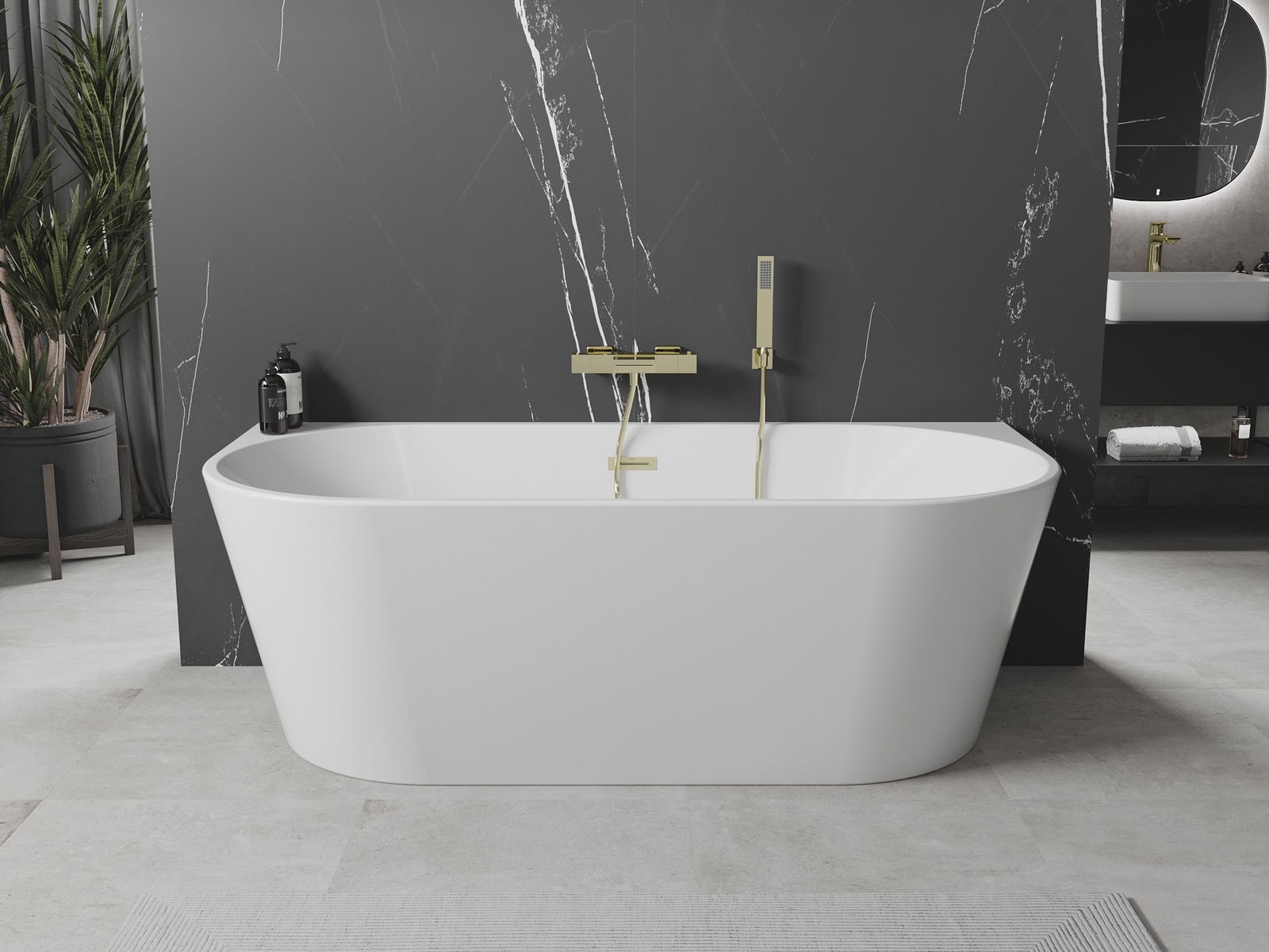 The Mexen Oval freestanding wall-mounted bathtub is an excellent choice for a modern bathroom. With dimensions of 180 x 80 cm and a height of 58 cm, it offers ample space for relaxation. Made of sanitary acrylic, it is not only aesthetically pleasing but also resistant to dulling and UV rays. The white color beautifully complements the brushed gold finish of the overflow. The bathtub is easy to install and comes with a practical siphon and click-clack stopper. It's an ideal solution for those who value durability and style.