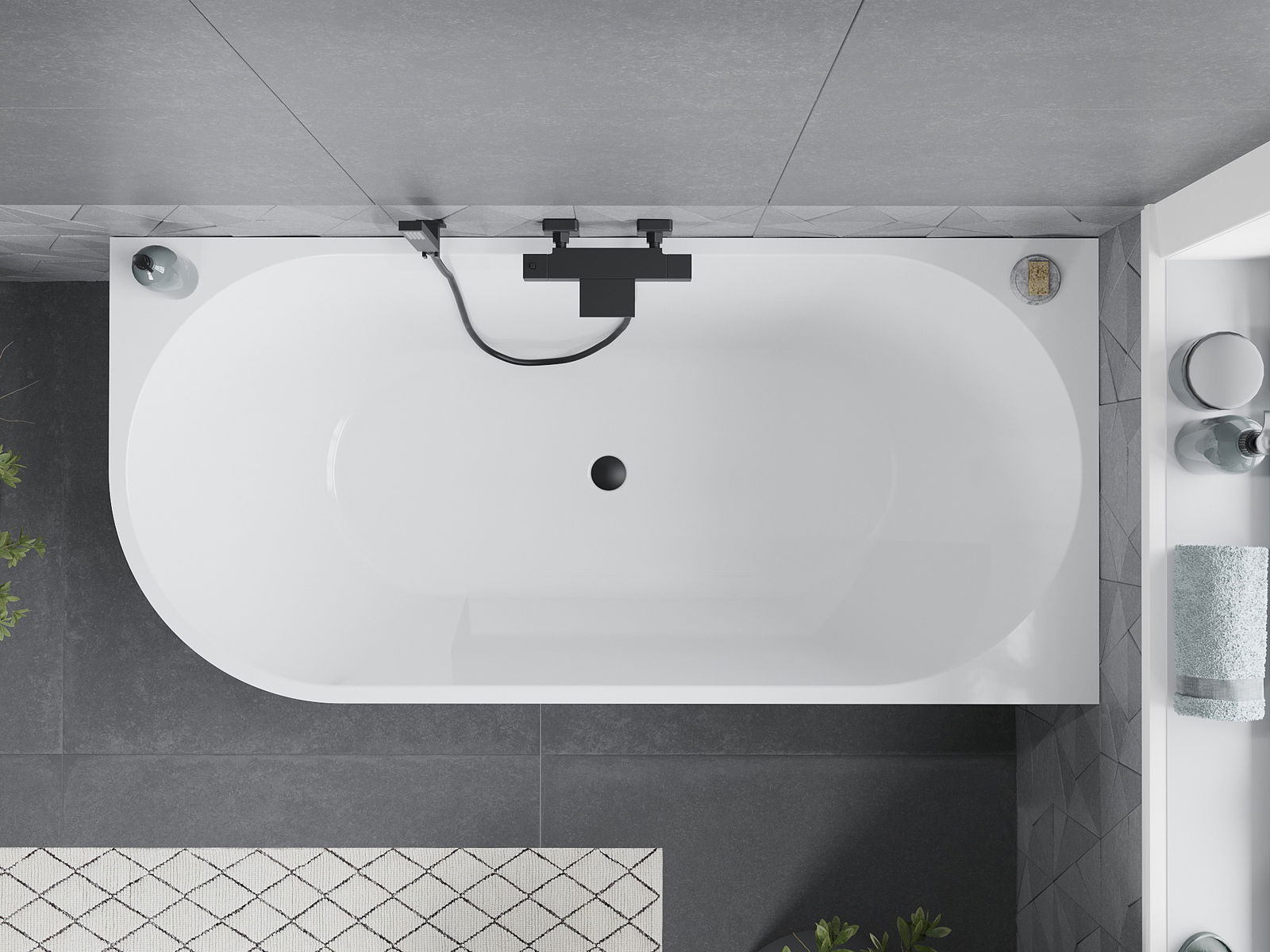 Mexen Mia free-standing corner bathtub right 150 x 75 cm, white/black, black overflow - 52691507575P-70