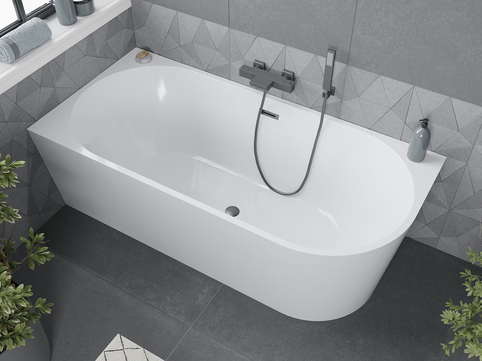 Mexen Mia freestanding corner bathtub left 180 x 80 cm, white, gun gray brushed overflow - 52691808000L-66