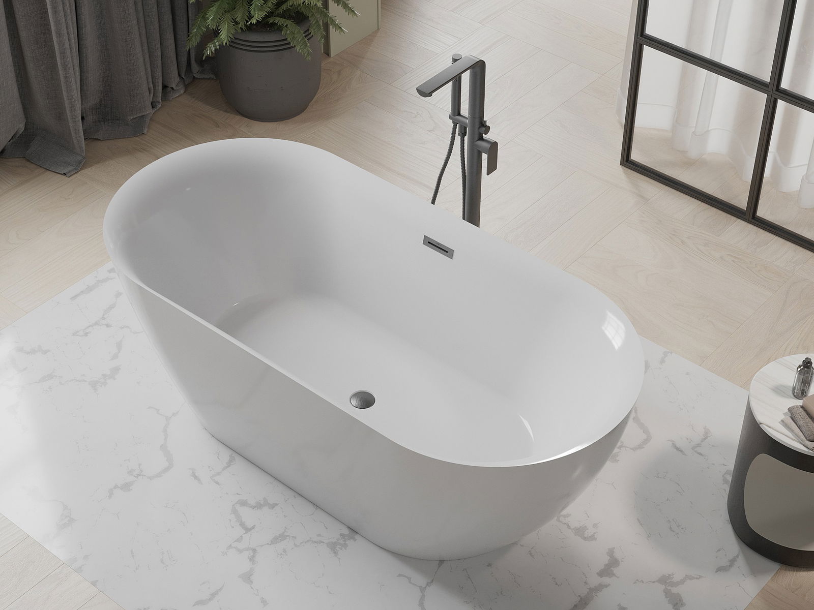 Mexen Roxy freestanding bath 170 x 80 cm, white, gun gray brushed overflow - 51201708000-66