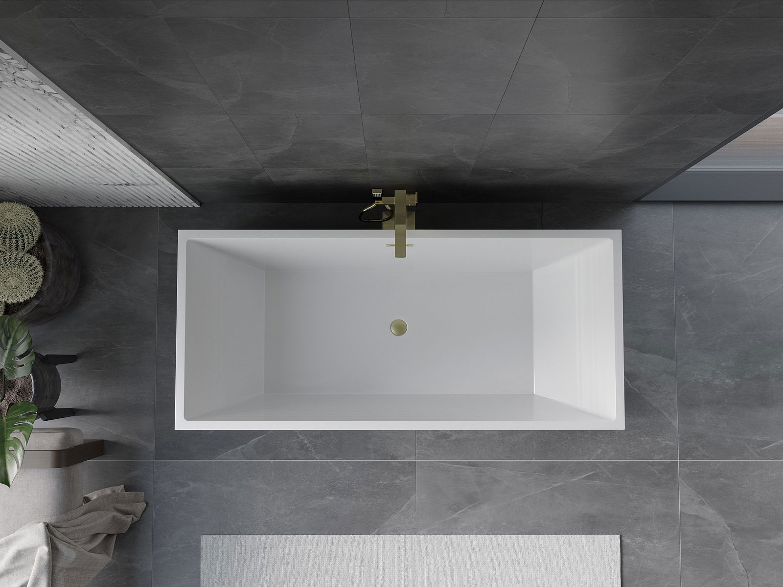 Mexen Vigo freestanding bathtub 178.5 x 80 cm, white/black, brushed gold overflow - 51251788075-55
