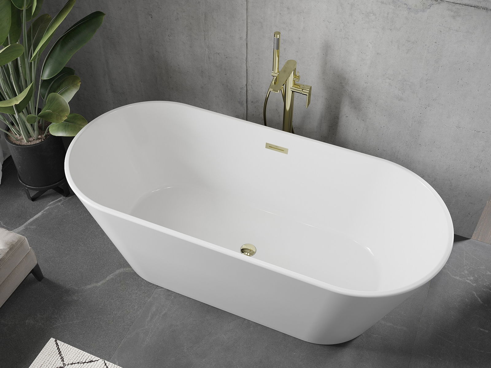 Mexen Flavia is a freestanding bathtub with dimensions of 150 x 75 cm, made of high-quality sanitary acrylic. It features an elegant white color with gold finish, giving it a luxurious appearance. With a depth of 46 cm and a height of 58 cm, it ensures comfort in use. The bathtub is equipped with a central drain and an overflow hole, enhancing its functionality. Additionally, the materials used in the product provide resistance to tarnishing and UV radiation.