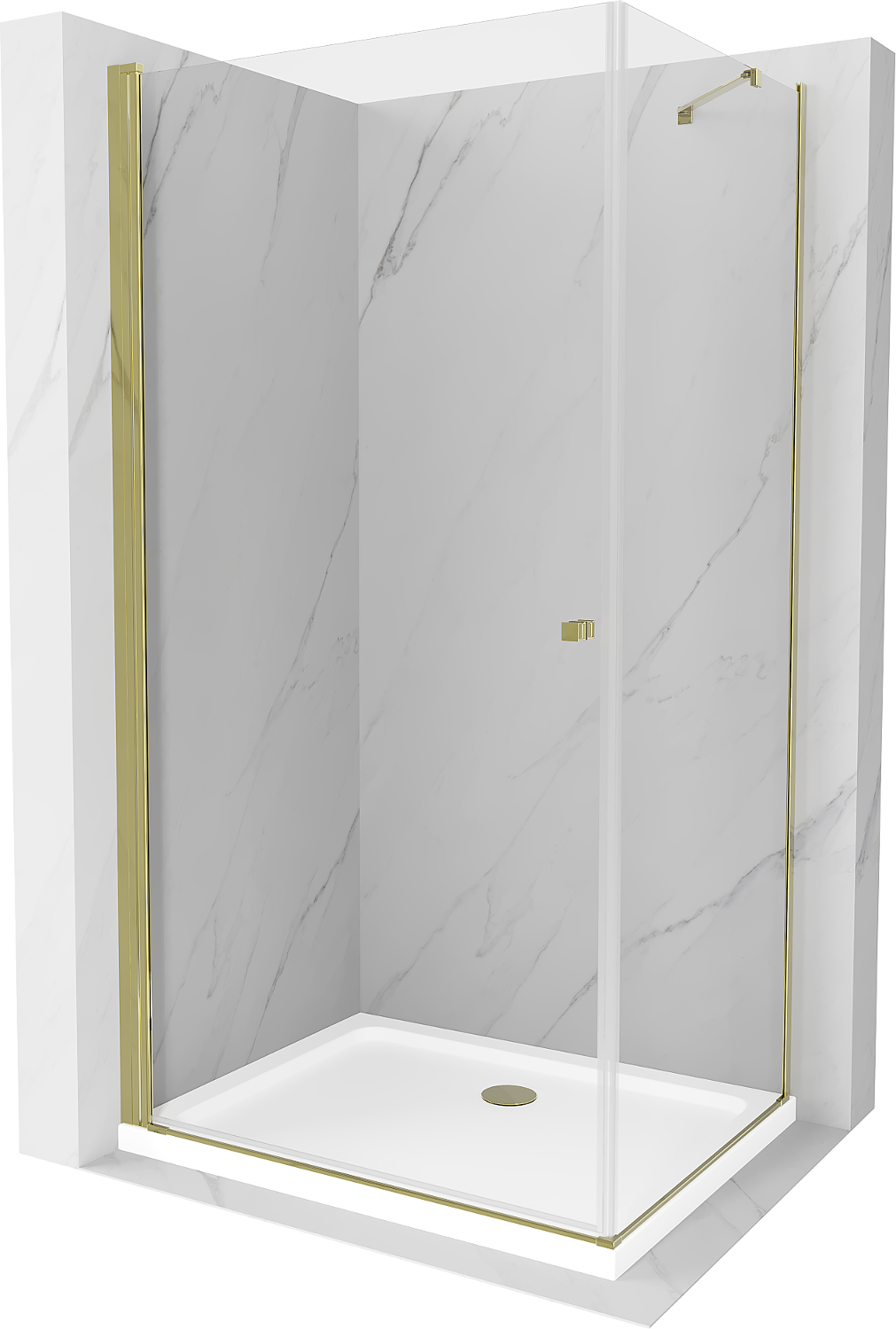 Mexen Pretoria 80 x 100 cm Hinged Shower Enclosure, Transparent, Gold + Flat Tray - 852-080-100-50-00-4010
