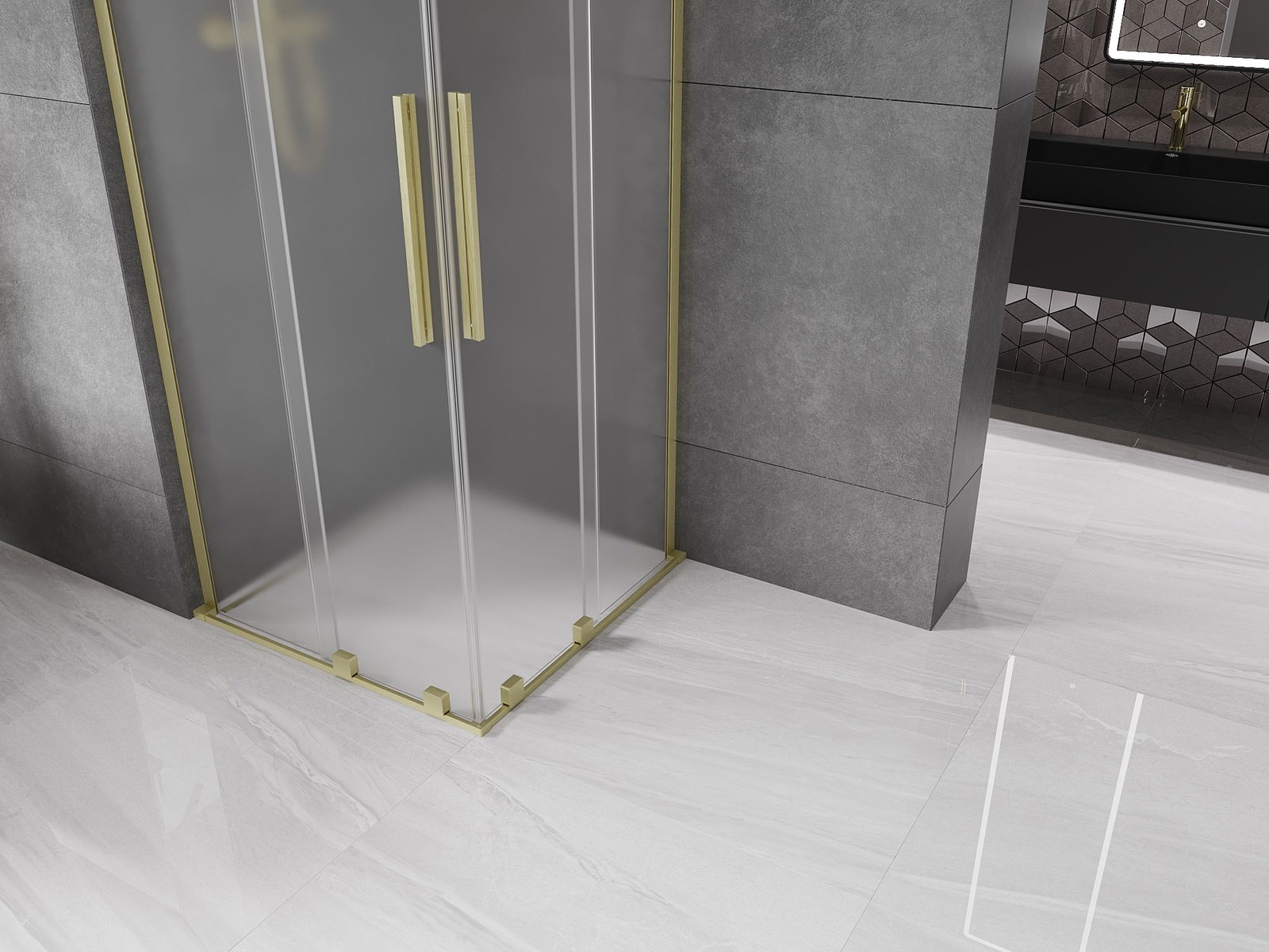 Mexen Velar L Duo Sliding Shower Enclosure 80 x 80 cm, Frosted, Brushed Gold - 871-080-080-02-33-55