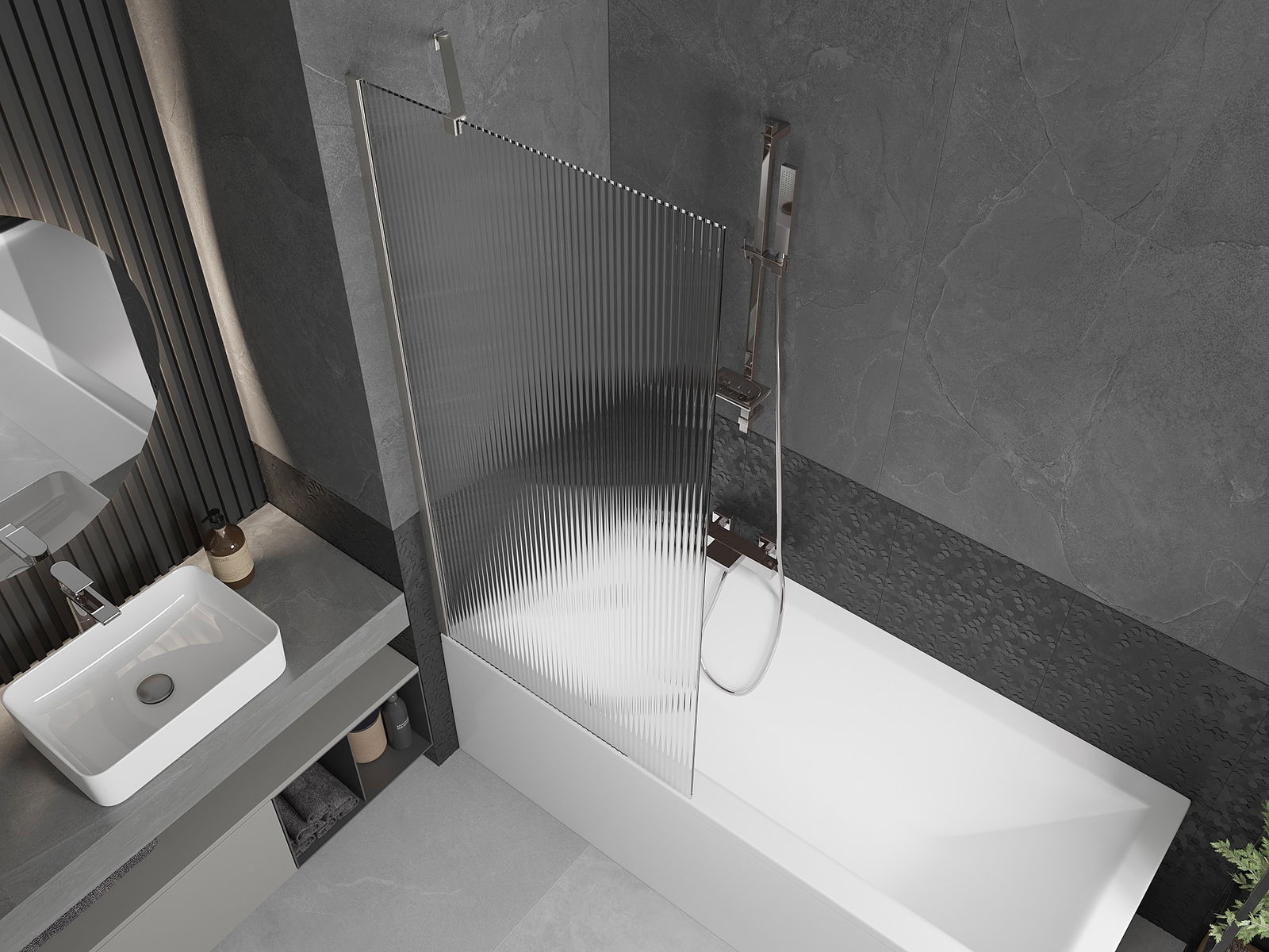 Effective protection against water spilling during bathing. The screen has seals that perfectly fit the glass surface and the edge of the bathtub. A functional solution ensuring safety and easy maintenance of cleanliness.