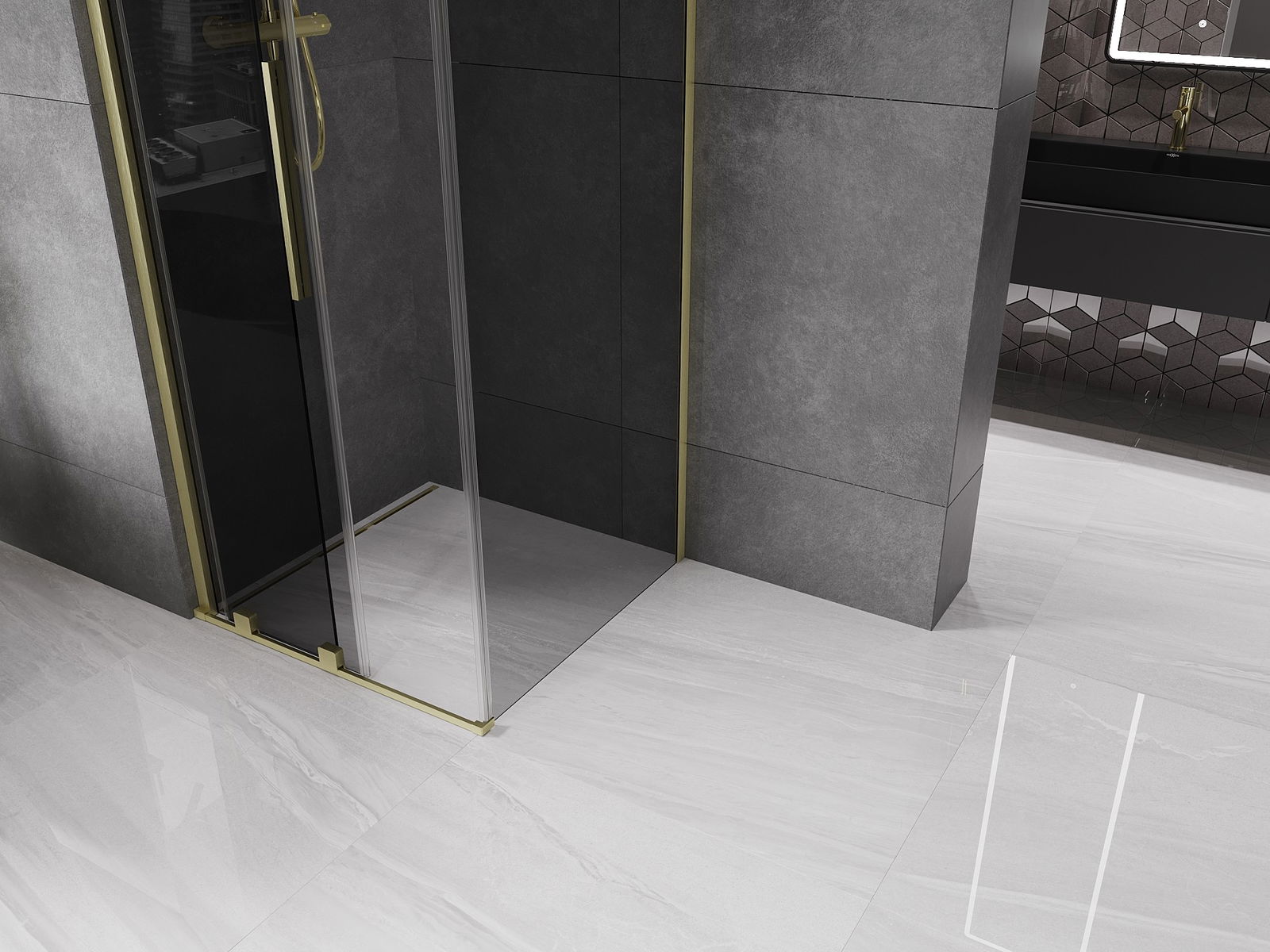 Mexen Velar sliding shower cabin 100 x 100 cm, graphite, brushed gold - 871-100-100-41-55