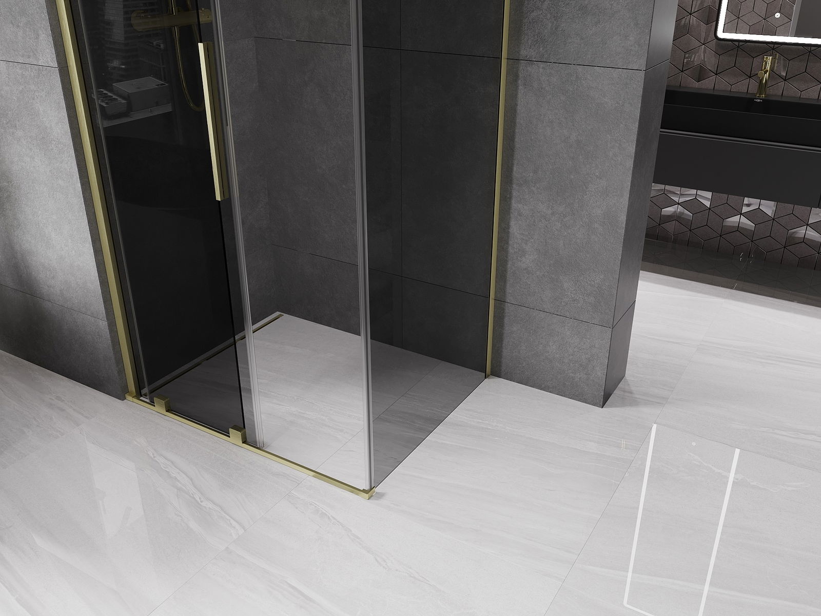 Mexen Velar sliding shower cabin 100 x 110 cm, graphite, brushed gold - 871-100-110-41-55