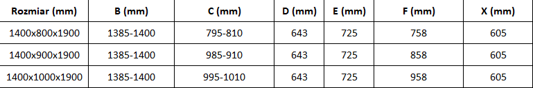 Shower cabin specifications: