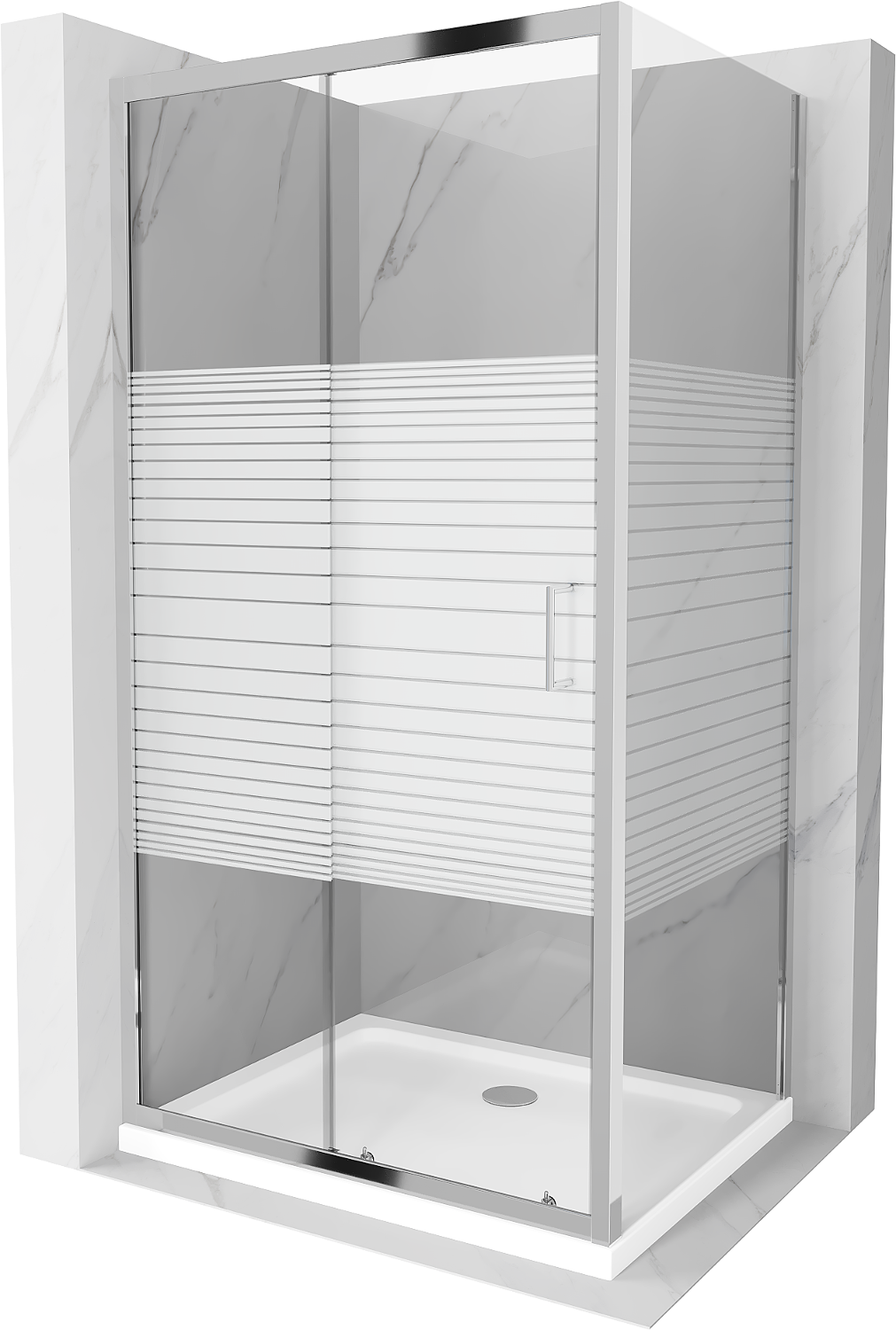 Mexen Apia sliding shower enclosure 100 x 80 cm, white stripes, chrome + Flat tray - 840-100-080-01-20-4010