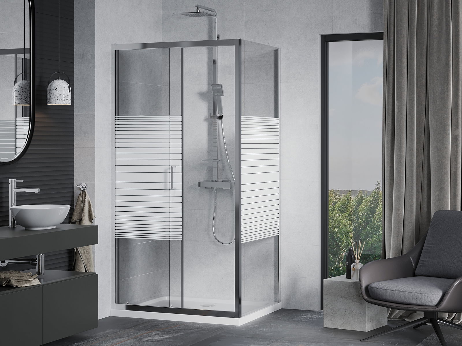 Mexen Apia sliding shower enclosure 120 x 80 cm, white stripes, chrome + Flat tray - 840-120-080-01-20-4010