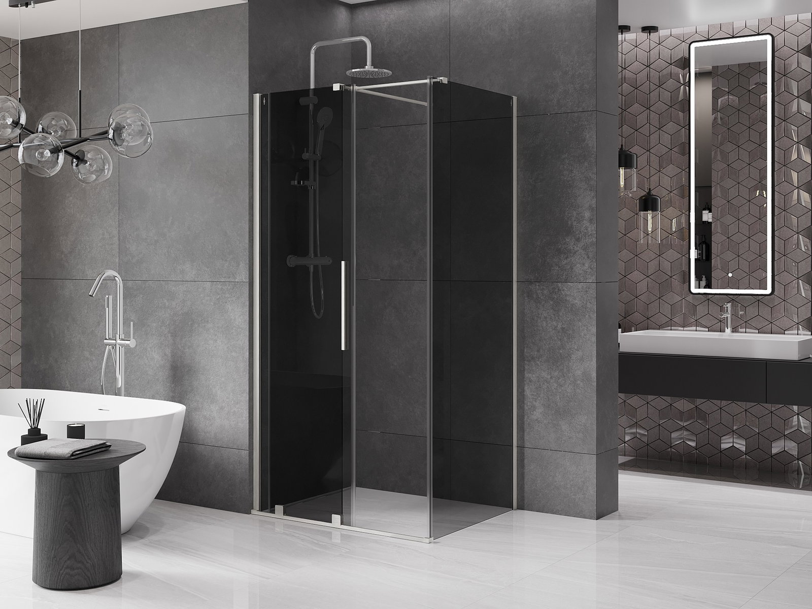 Mexen Velar sliding shower cabin 90 x 100 cm, graphite, brushed nickel - 871-090-100-41-97