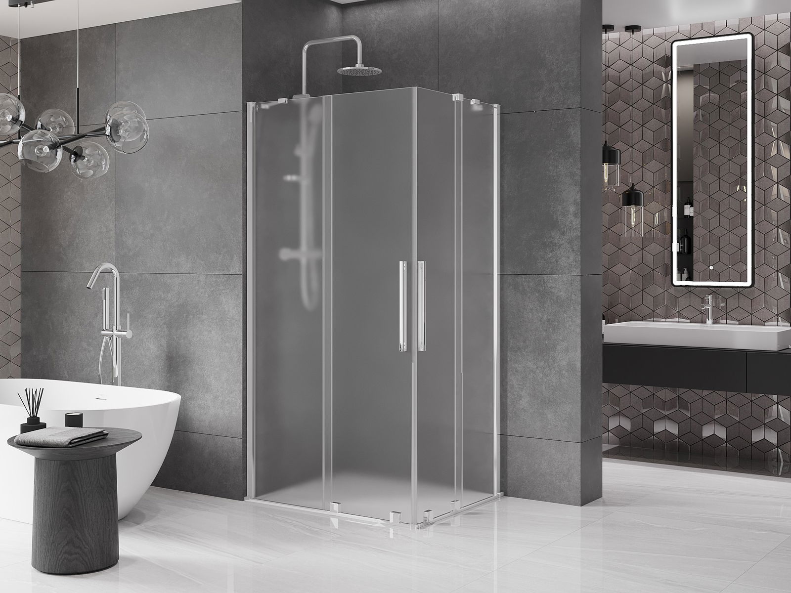 Mexen Velar Duo sliding shower cabin 90 x 80 cm, frost, chrome - 871-090-080-32-01