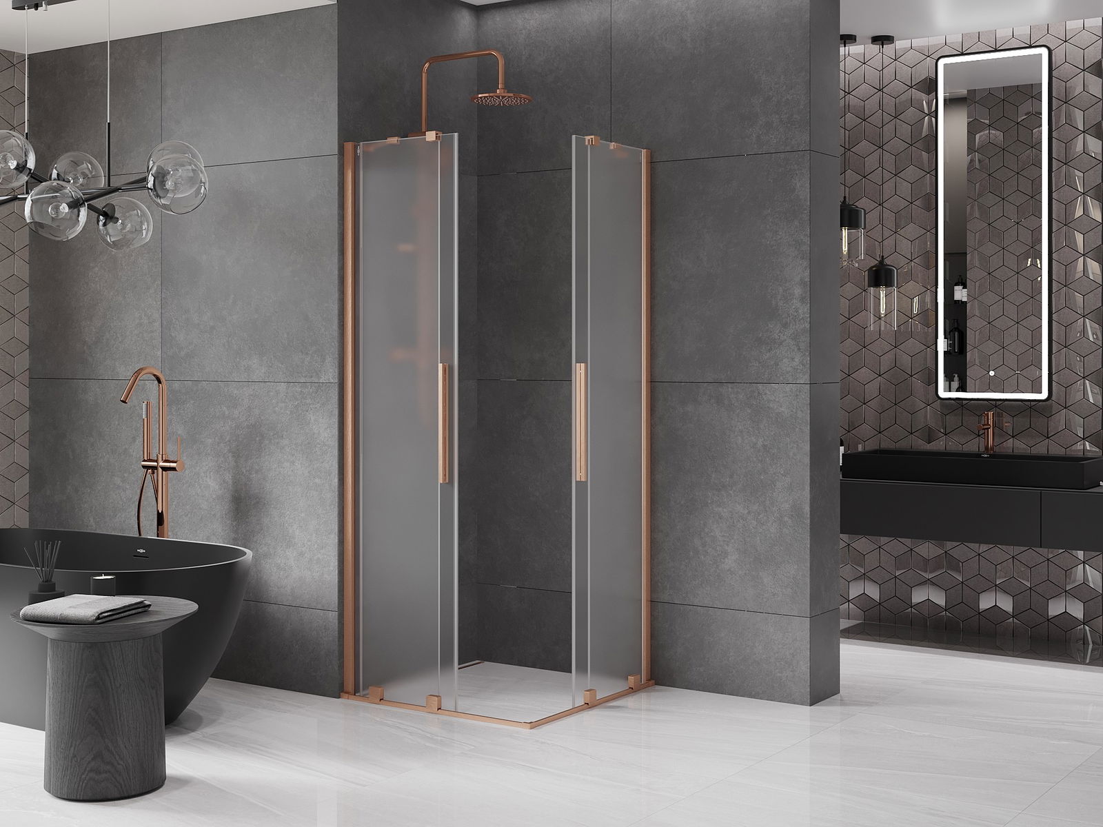 Mexen Velar Duo sliding shower enclosure 100 x 100 cm, frosted, brushed copper - 871-100-100-32-65