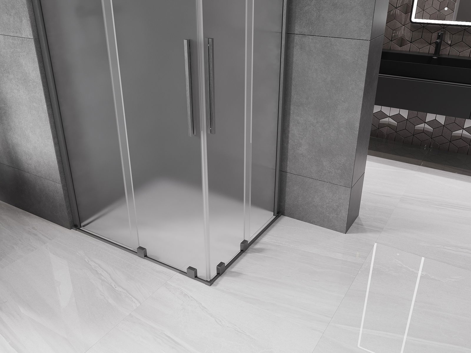 Mexen Velar Duo sliding shower cabin 90 x 80 cm, frost, brushed gun gray - 871-090-080-32-66