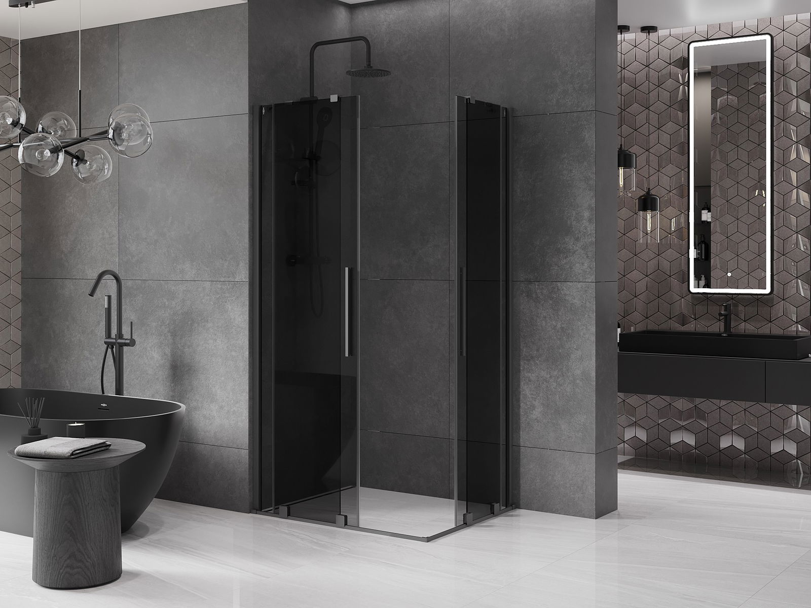 Mexen Velar Duo sliding shower cabin 90 x 80 cm, graphite, gun metal - 871-090-080-42-95