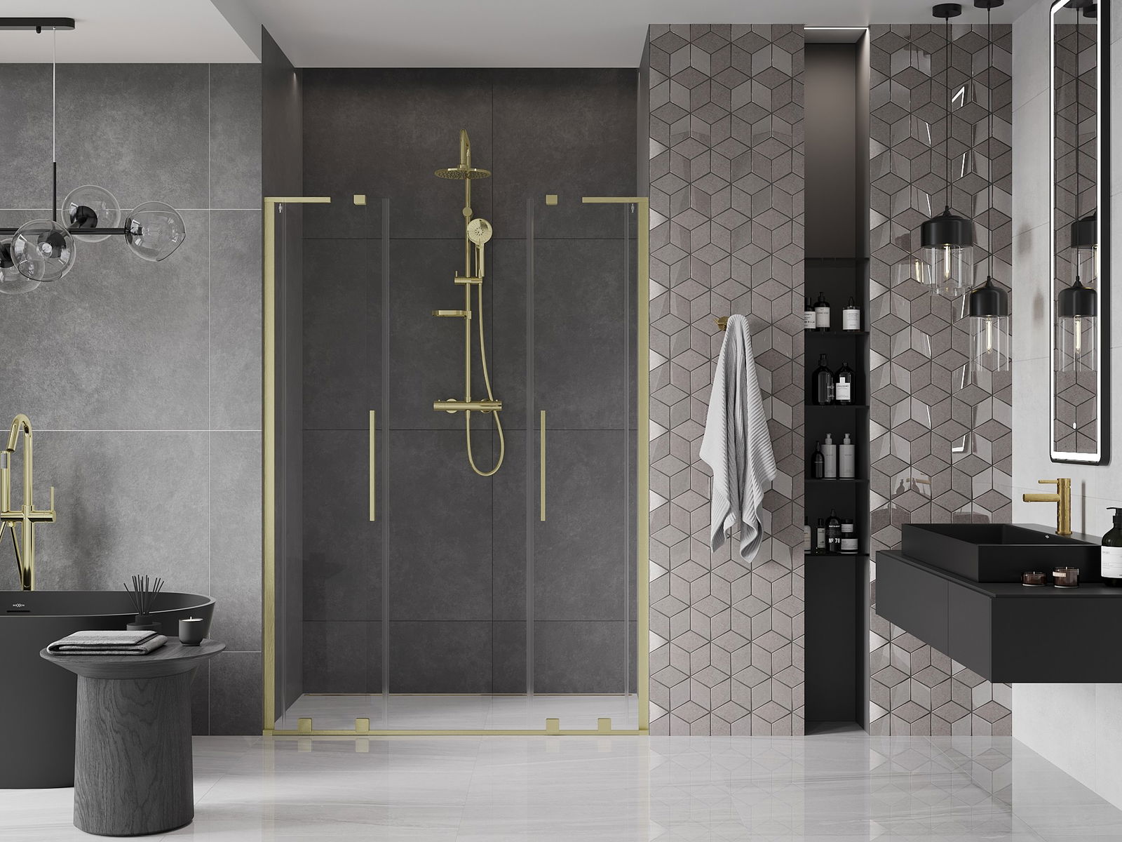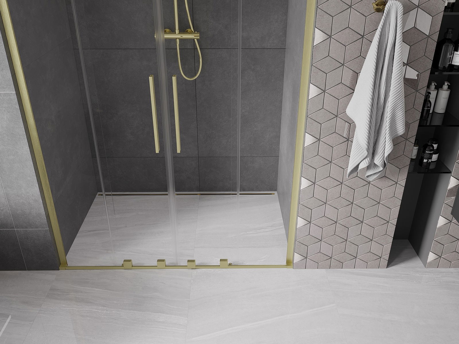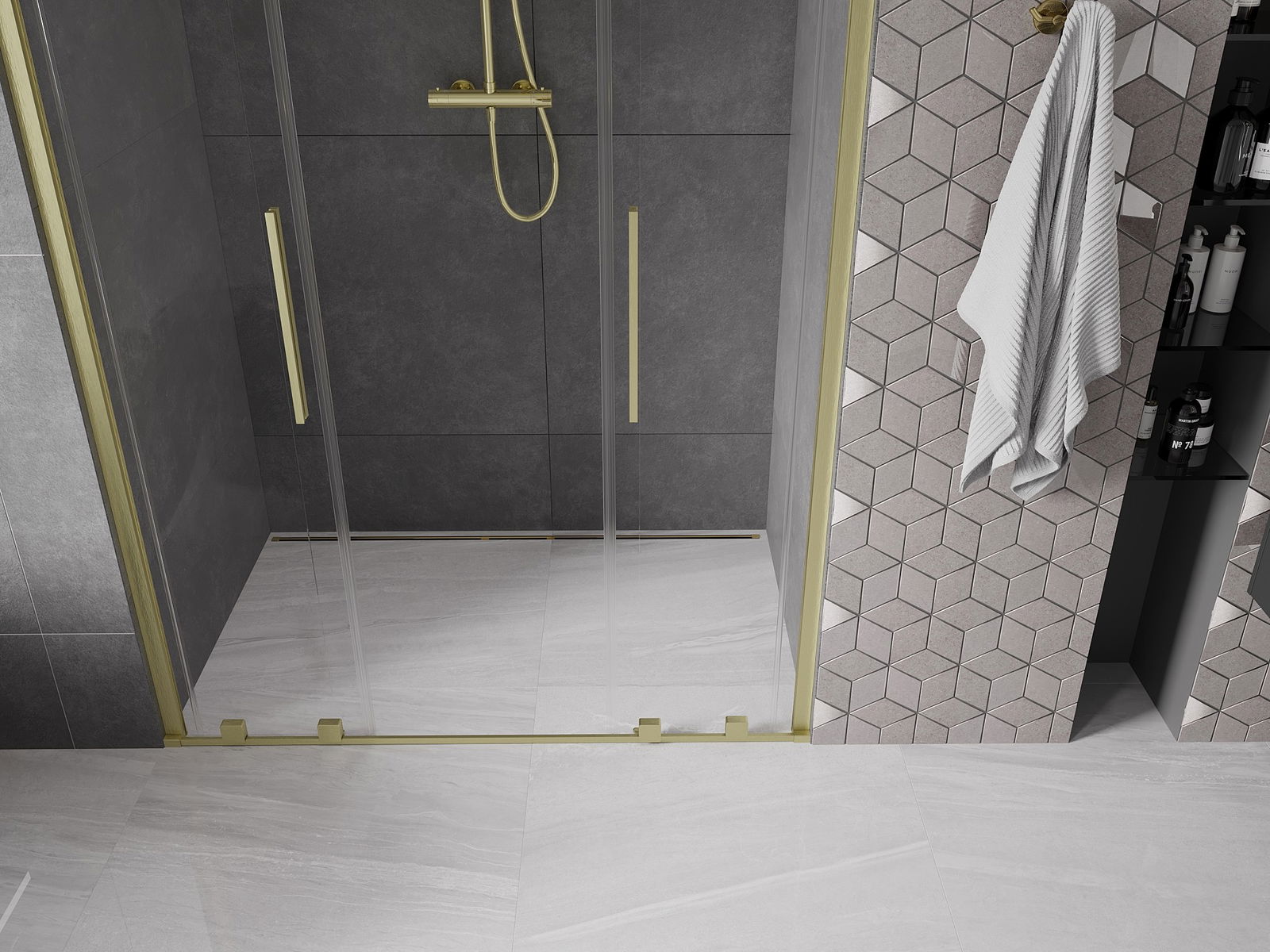 Mexen Velar L Duo sliding shower doors 160 cm, transparent, brushed gold - 871-160-003-02-55