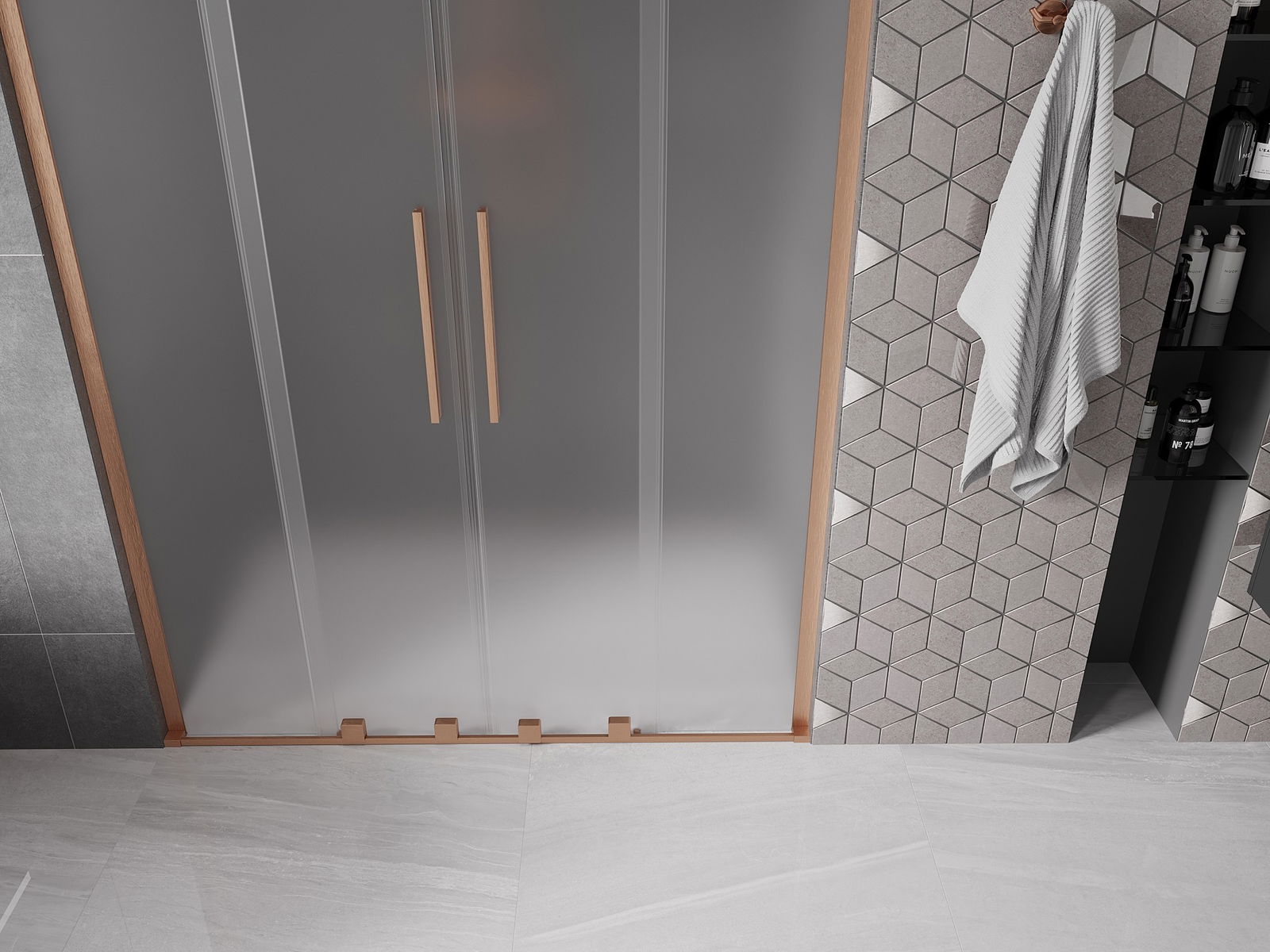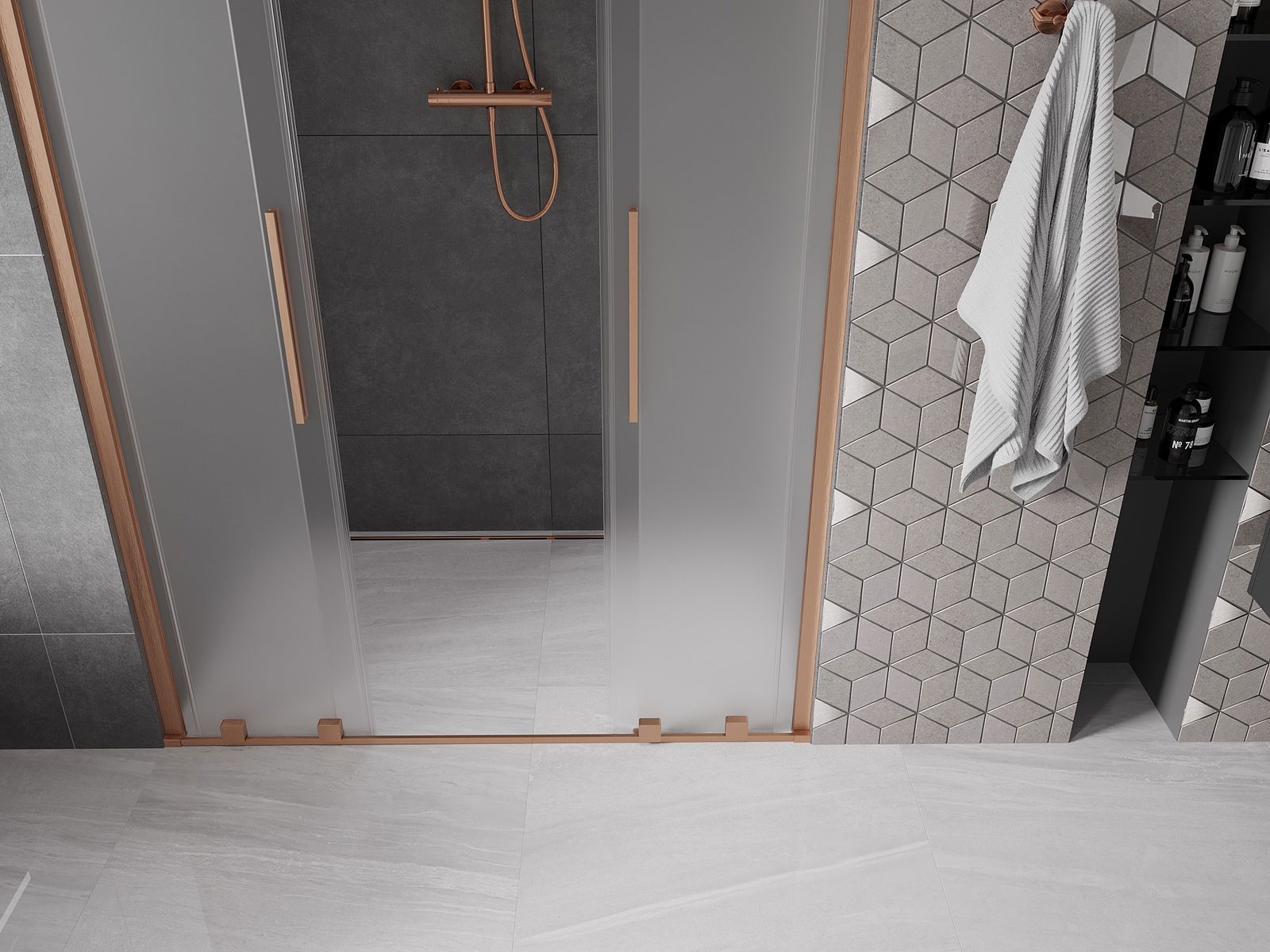 Mexen Velar L Duo sliding shower doors 150 cm, frost, brushed copper - 871-150-003-32-65