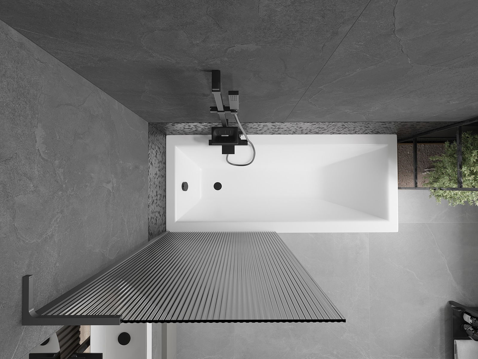 Effective protection against water spilling during bathing. The screen has seals that perfectly fit the glass surface and the edge of the bathtub. A functional solution ensuring safety and easy maintenance of cleanliness.