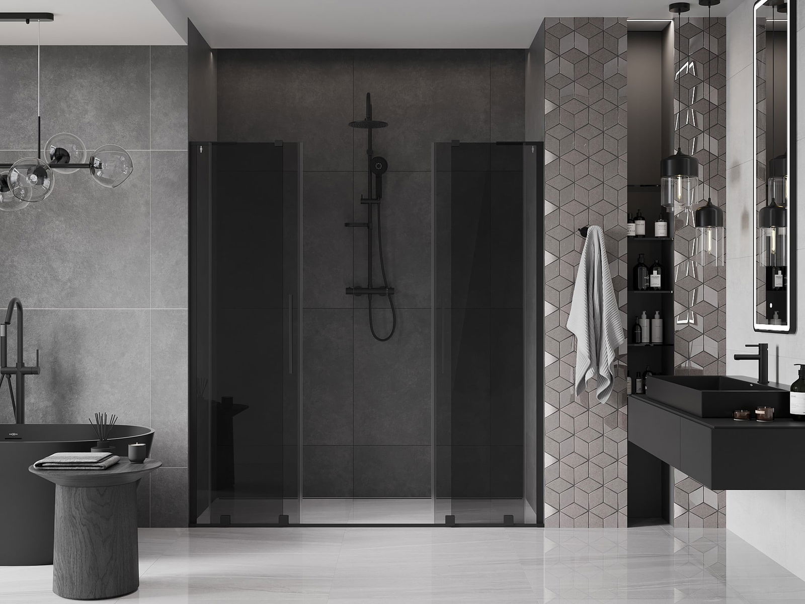 Mexen Velar L Duo sliding shower door 200 cm, graphite, black - 871-200-003-42-70