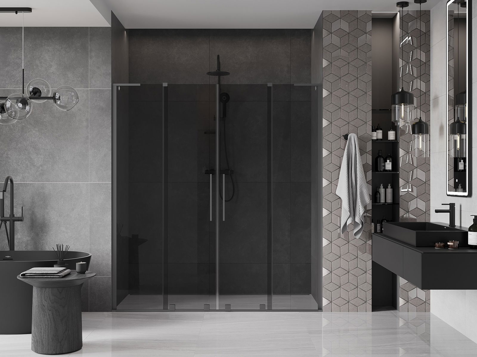 Thanks to the use of a universal mounting system, shower doors can be installed on the right or left side, depending on your needs. This allows you to easily design a shower tailored to the bathroom space.