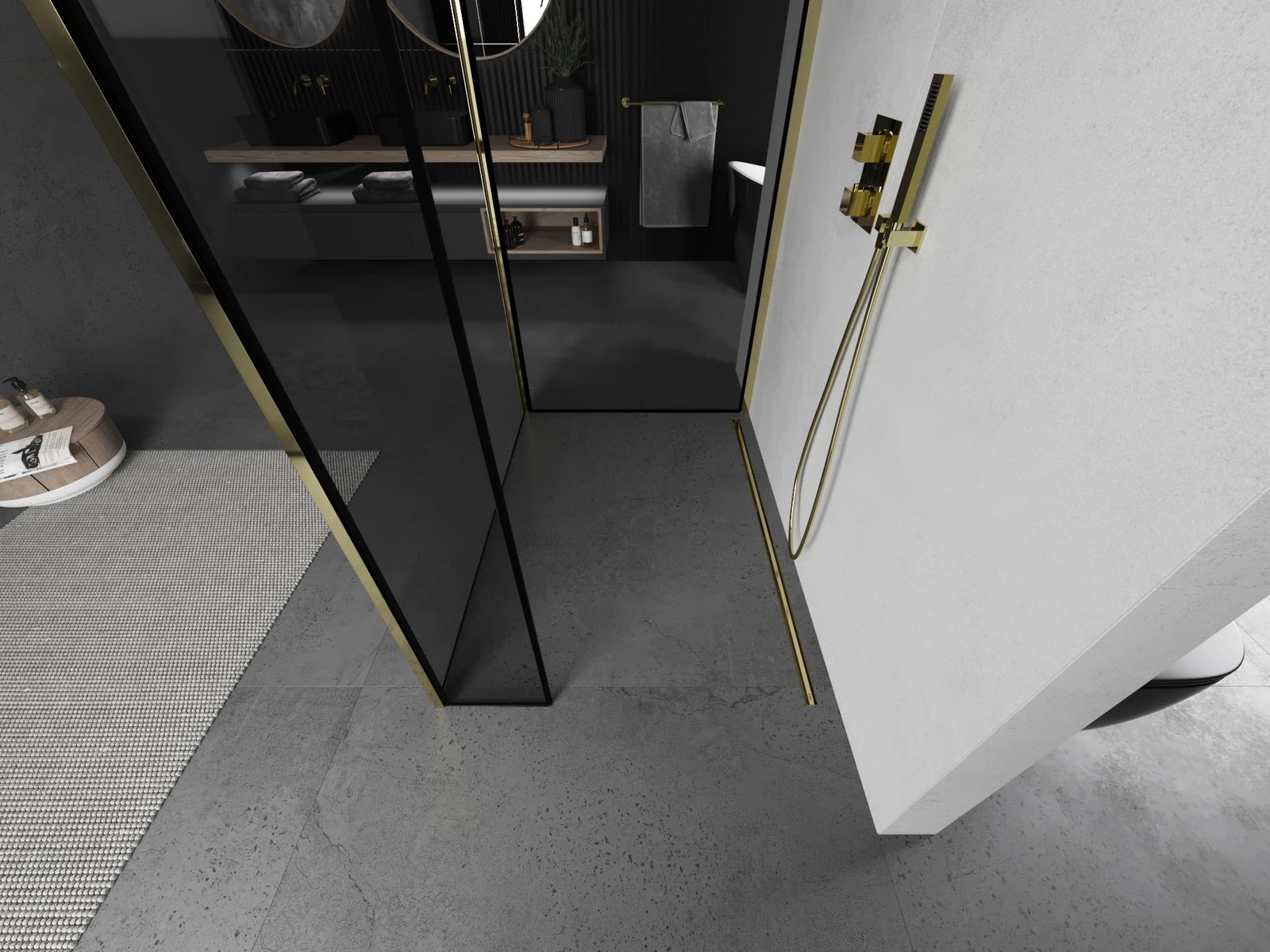 Mexen Kioto Walk-in Shower Wall 100 x 100 x 40 cm, Black Frame, Gold - 800-100-100-221-50-70-040