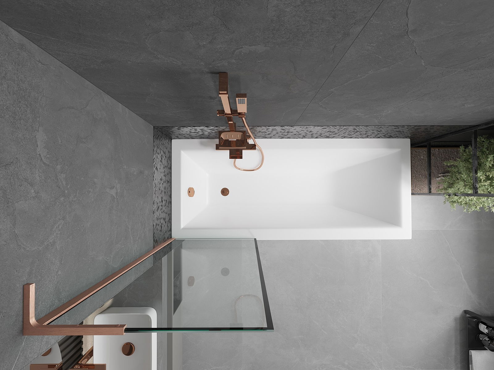 Mexen Next L Bath Screen 1-panel 60 x 150 cm, black frame, brushed copper - 895-060-000-03-70-65