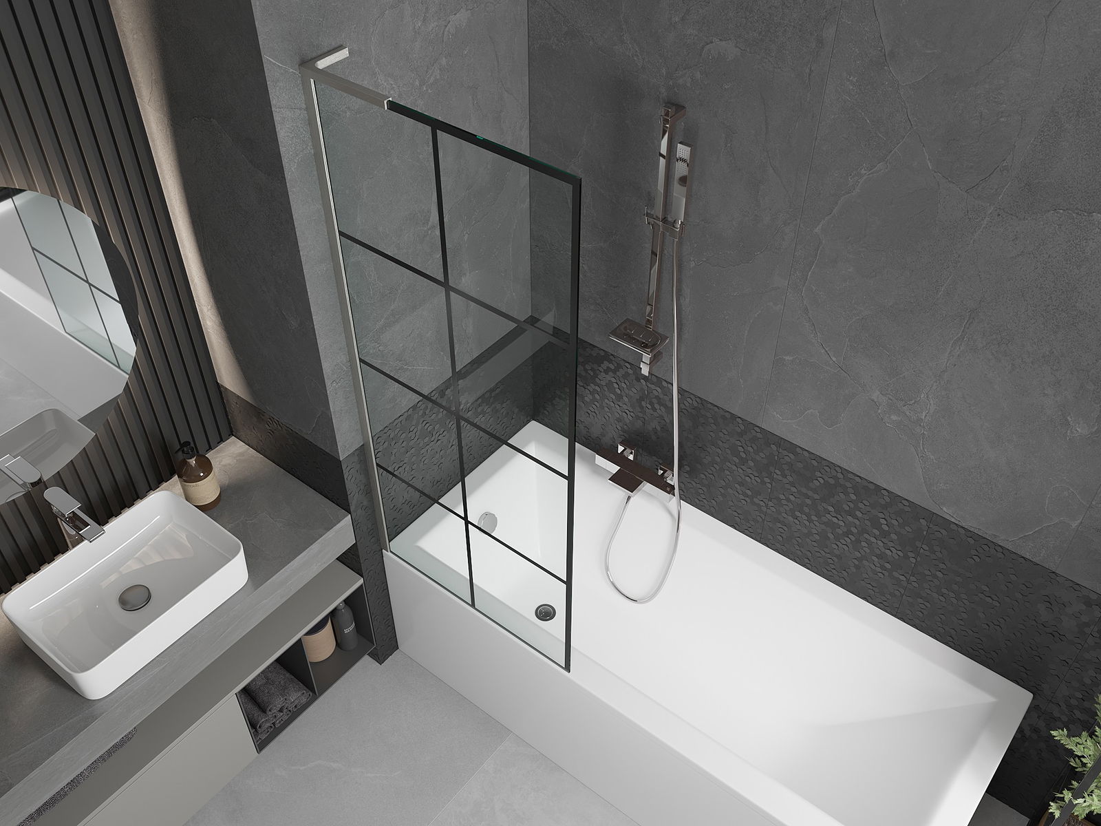 Mexen Next L Bath Screen 1-Panel 70 x 150 cm, Black Grid, Brushed Nickel - 895-070-000-03-77-97