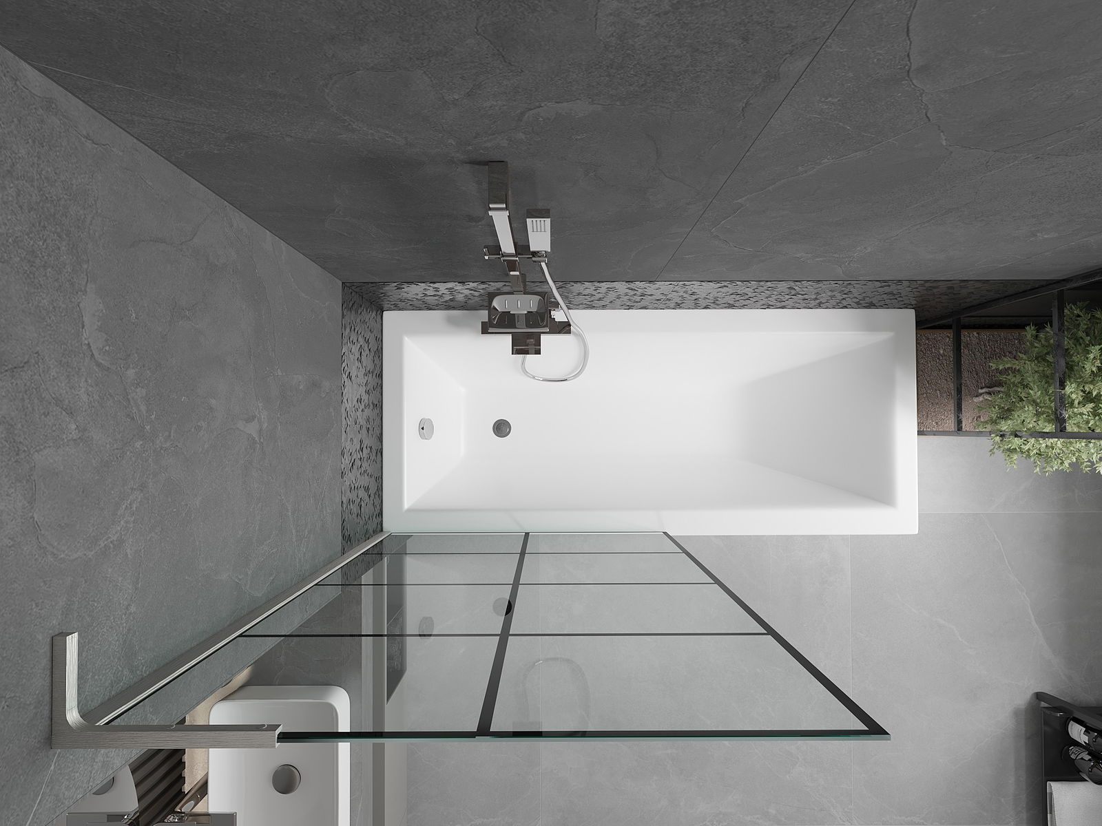 Effective protection against water spilling during bathing. The screen has seals that perfectly fit the glass surface and the edge of the bathtub. A functional solution ensuring safety and easy maintenance of cleanliness.