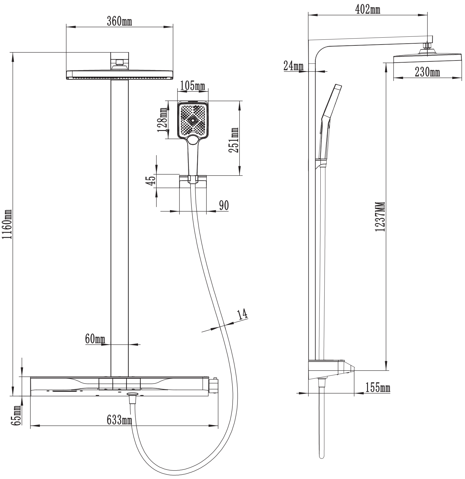 The shower faucet with a cosmetic shelf is a functional solution that combines ease of use with aesthetics. The shelf allows for the storage of cosmetics, soaps, shampoos, and other accessories at hand during a bath.